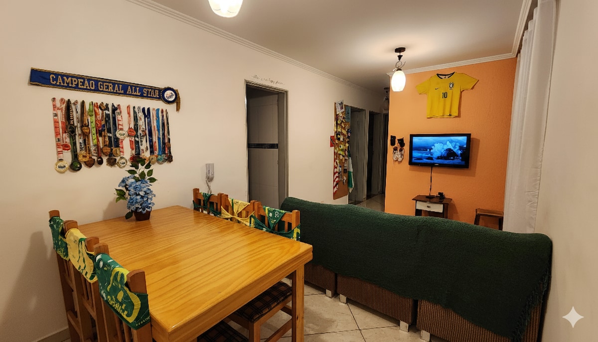 Entire apartment: Bedroom with suite, 32-inch TV, luggage rack and mosquito netting on the window. Living room with 42-inch TV, large sofa and two benches. Full kitchen Private outdoor area of the apartment with a table and chair. Bathroom with mosquito net screen. Next to Arena do Galo Near the Gospa Mira Church Expominas 4.5 km away