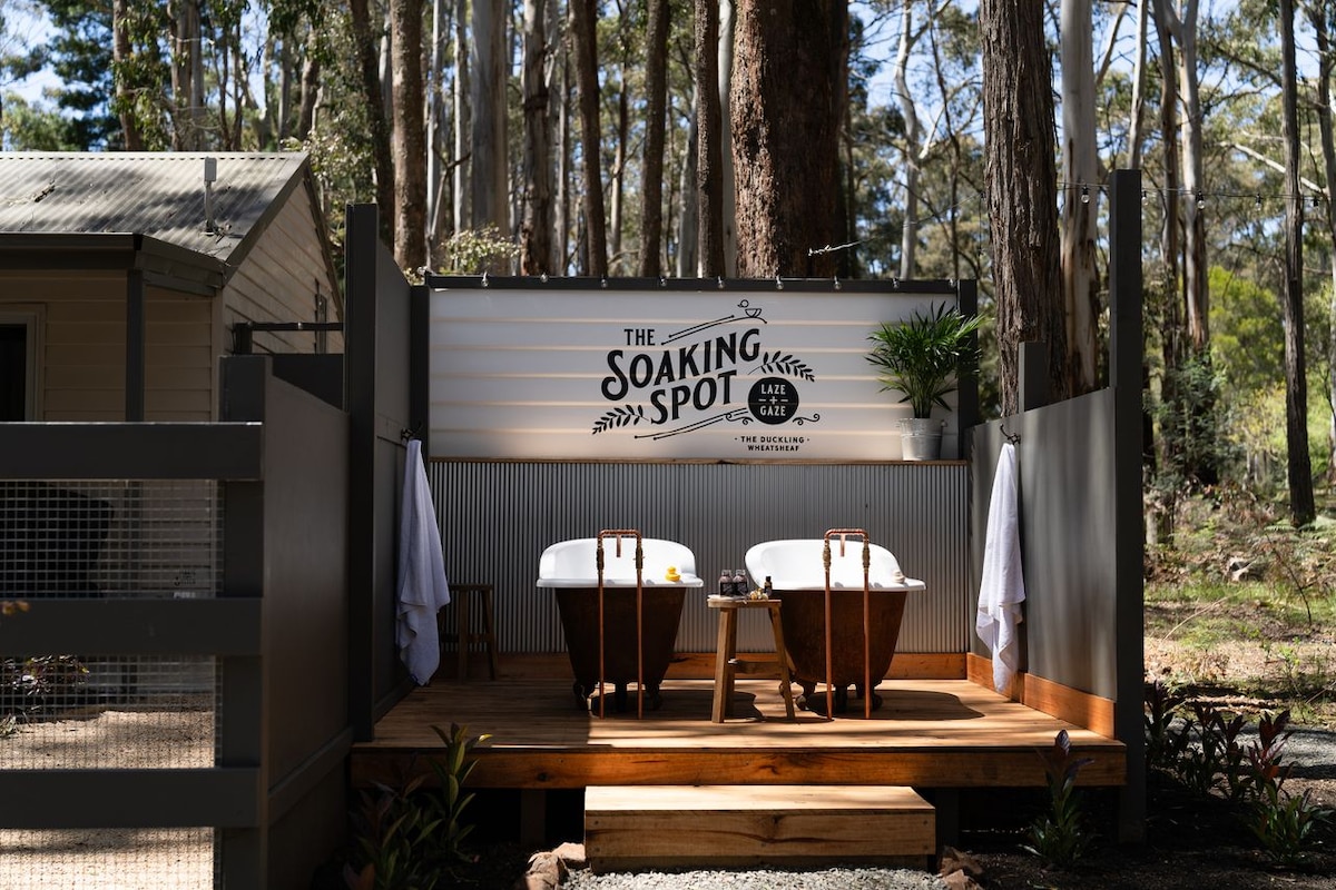 The Hepburn Treehouse is a haven in the heart of picturesque Hepburn Springs. This bespoke accommodation for two is tucked away amongst the trees in a striking A-frame studio cabin with mid-century inspired styling. Meticulously & lovingly curated and filled with personal furnishings, objects and books gathered from around the world. Floor to ceiling windows, luxury linens, wood fire, soaring ceilings & spa bath ensure an unforgettable stay in this tranquil treehouse.
