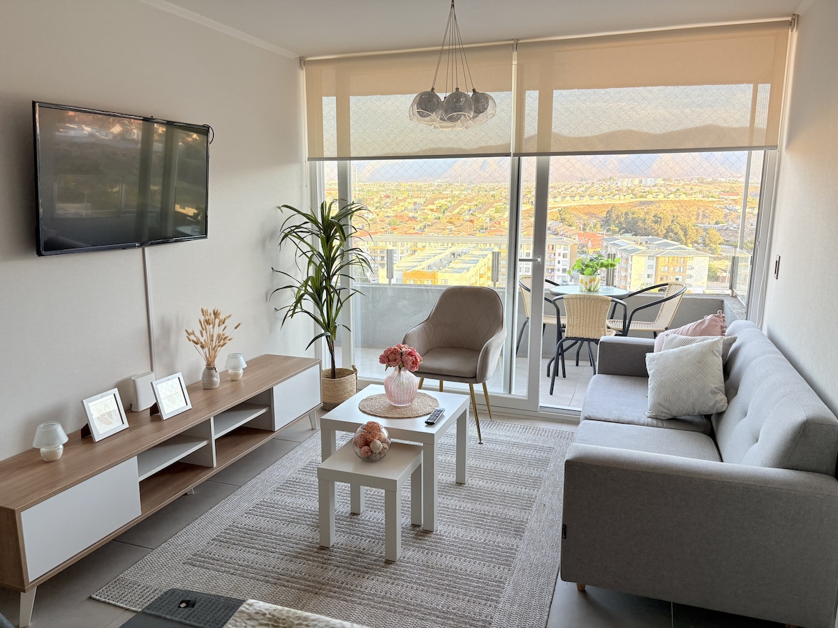 To rest or work with the best view and location in La Serena. Beautiful and cozy apartment on the Avenida del Mar, a few steps from Casino Enjoy and close to the best restaurants in the city. Fully equipped for 4 people, with private parking and everything you need to relax and just enjoy. Experience the best rest with the best amenities.