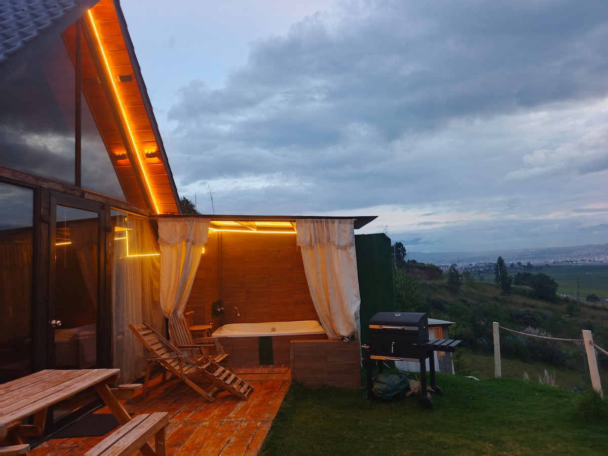 Enjoy a room for a full rest. Relax in the private whirlpool. We also offer a private barbecue area for outdoor culinary experiences. Don't worry about parking, as we have two private spaces. Our location in the Valley of the 9 Volcanoes allows you to explore the natural beauty, hike and discover the local culture in the nearby towns of Aloasí and Mejía. Book now and make some unforgettable memories in this paradise!