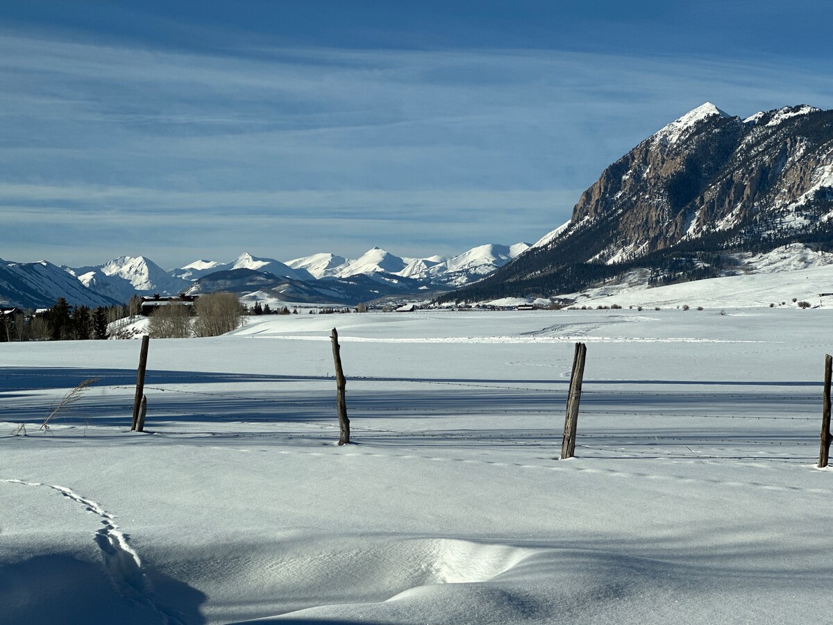Spacious 2BR/2BA duplex with private entrance, huge 800 sq ft deck, and unbeatable 360° views—some of the best in Crested Butte. Pet-friendly with fenced yard and XL dog door. Enjoy a full kitchen, wood stove, gas + electric heat, 75” TV, fast WiFi, fire pit, and all the comforts of home. Set on 1.3 acres with direct trail access and frequent wildlife sightings. Just 1 mile from town. No shared spaces—quiet, private, and ideal for couples, families, or remote work. Enjoy the recent updates!