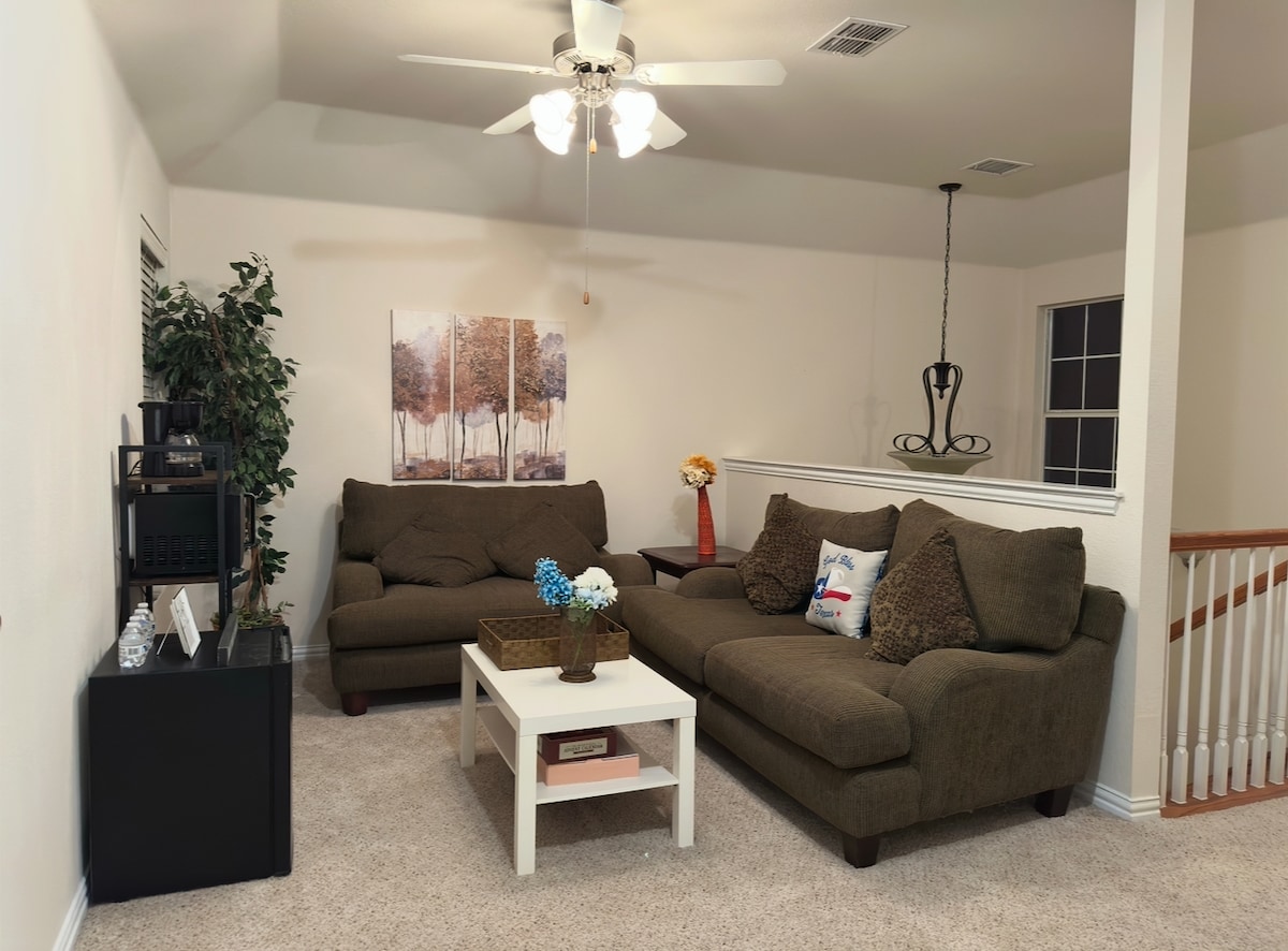 Welcome to the Giddy Up Getaway!! — a stylish, multi-level Western retreat in the heart of Dallas! This 3BR, 3.5BA getaway sleeps up to 10 and features spacious living room, kitchen, a game room, and a private patio for outdoor dining and lounging. Just minutes from downtown, AAC, and White Rock Lake, with easy access to Love Field, DFW, and AT&T Stadium, it's the perfect home base for families, groups, or game day fun.