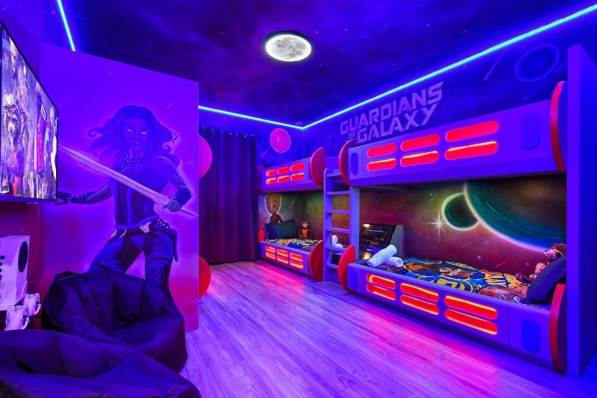 Give your family a stay they’ll never forget! Kids can rule their own Frozen kingdom or battle in a galaxy far, far away, while adults unwind after action-packed park days. ✔ Themed kids’ rooms – Frozen castle & intergalactic escape ✔ Private splash pool for a refreshing break ✔ Spacious & modern layout for families & groups ✔ Prime location near Disney, dining & top attractions Don’t miss out—book Let It Go Galaxy before it’s gone!