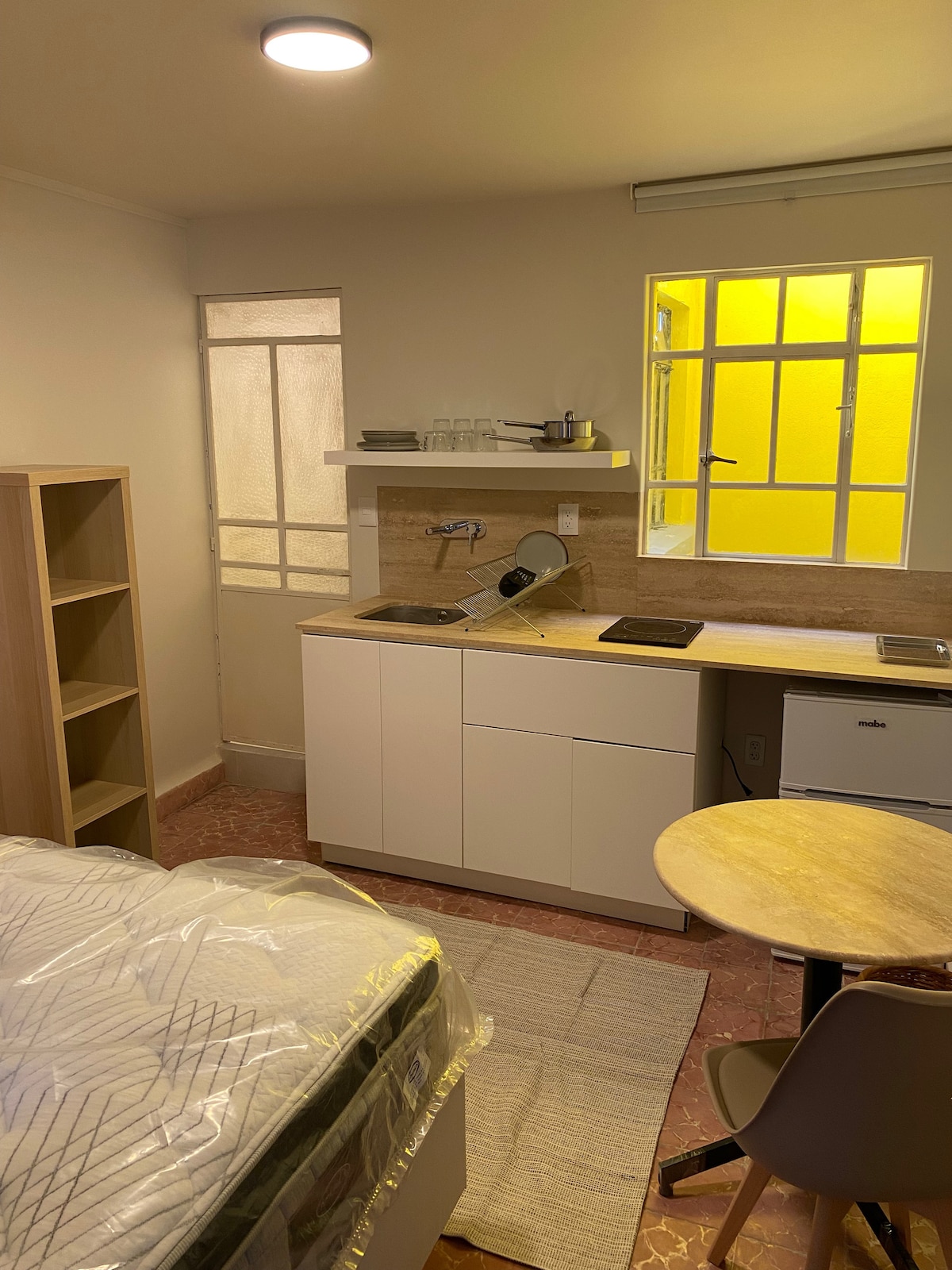 Mid century Functionalist building in Del Valle, completely renovated, all new. Excellent location, two blocks from Metro Insurgentes Sur, Metrobus and major connecting roads. Four blocks from Parque Hundido. The studio is fully furnished and totally renovated. New bathroom furniture, faucets, tiles. Comes with a new kitchenette with induction plate, refrigerator, new dishware, new mattress. The studio includes a small private terrace only accesible to you. Low key building.