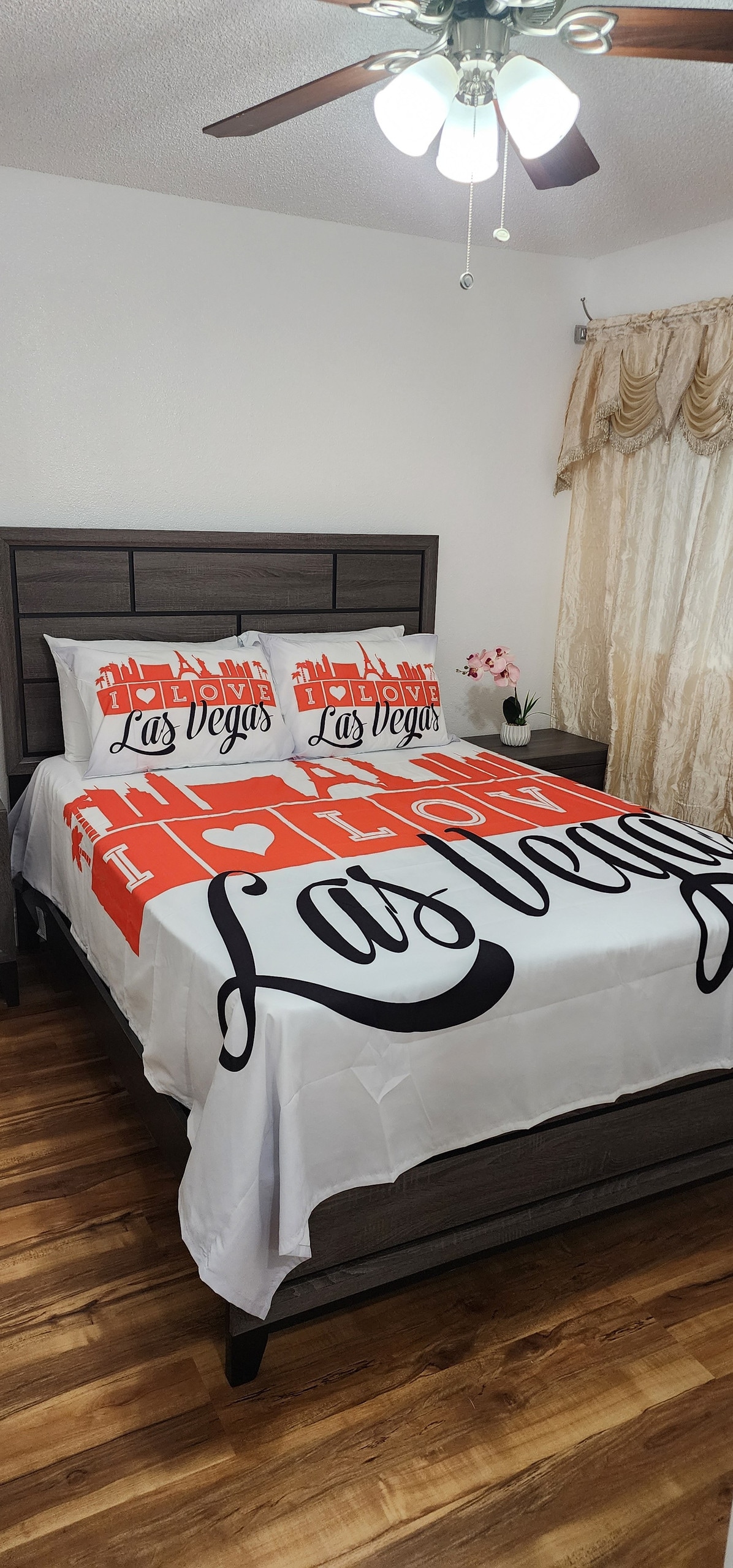 Luxury Guest House with full kitchen and home amenities, comes with a queen luxury mattress bed with a Futon Sofa bed that can accommodate one more adult or 2 children. The place is a guest house with it’s own private entrance on the side of the house can’t missed the pavers way leading you to the entrance gate. 5 mins from the airport and 5-10 mins to the strip it is a great location. We’ve got cameras, for your protection and ours we have cameras filming only the front of the property.