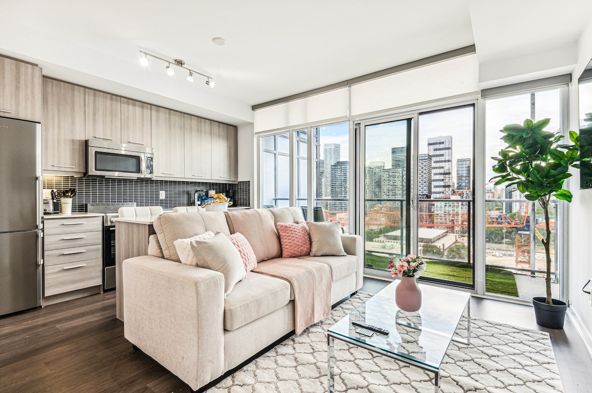 Marvel at the glorious Toronto urban vibes from your room with floor to ceiling panoramic windows. This 1 bedroom condo is professionally designed with modern finishes. You will absolutely love the space we have prepared for you. Relax, unwin,d and enjoy the city views on the private balcony with outdoor furniture. Professionally cleaned after each guest checkout. 100% private and unshared, entire modern condominium unit. Safe, secure, and easy self-check-in procedures with 24/7 security.
