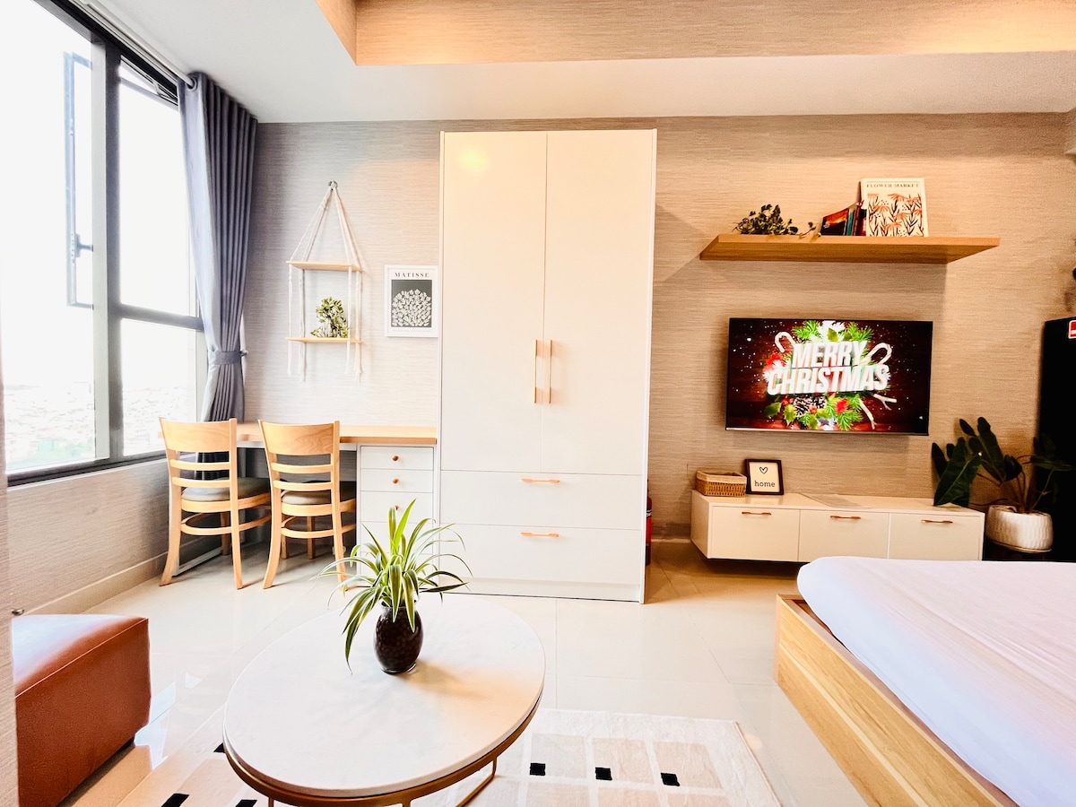 A beautifully designed studio apartment with everything you need, centrally located but hidden away just enough for a peaceful night of sleep away from the heavy city noise. Great for travelers who want to explore Saigon and looking for quality comfort and a more local experience. - Beautiful swimming pool - Free fast wifi, Cable TV - Free amenities for your living: washer, dryer, AC, fridge, hot water - Kitchen with enough tools for your cooking. Note: Not provide/support VAT invoices