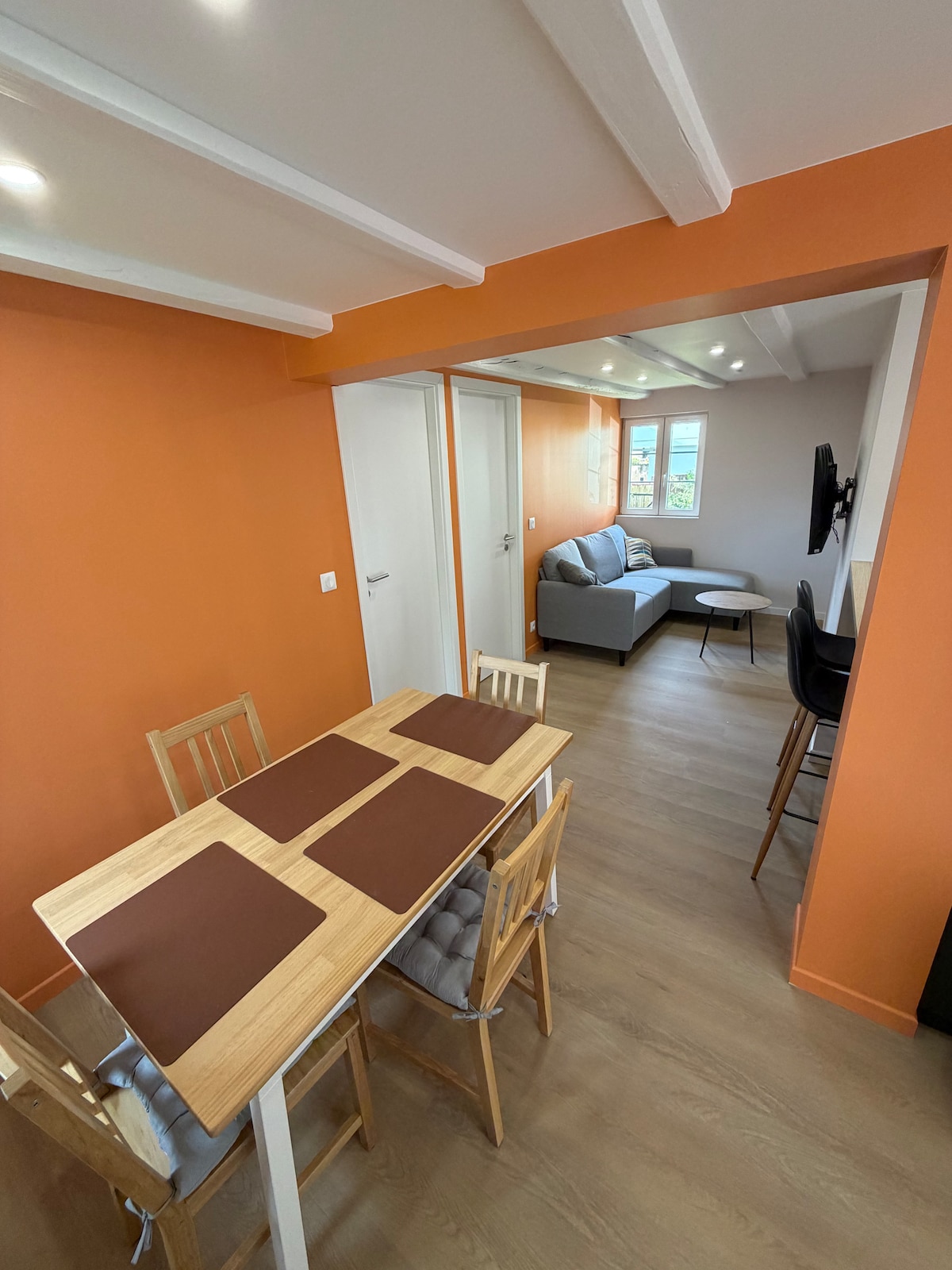 2-room 55 m2 *** rated apartment, completely renovated with balcony, located on the 1st floor of a detached house (not suitable for people with reduced mobility). Easily accessible from Strasbourg airport and close to the highway network, this accommodation can accommodate 6 people. It consists of a large living room with equipped kitchen and Wi-Fi, a bedroom for 4 people and a bathroom with shower and toilet. A crib and high chair are available. Ideal for summer/winter hikers.
