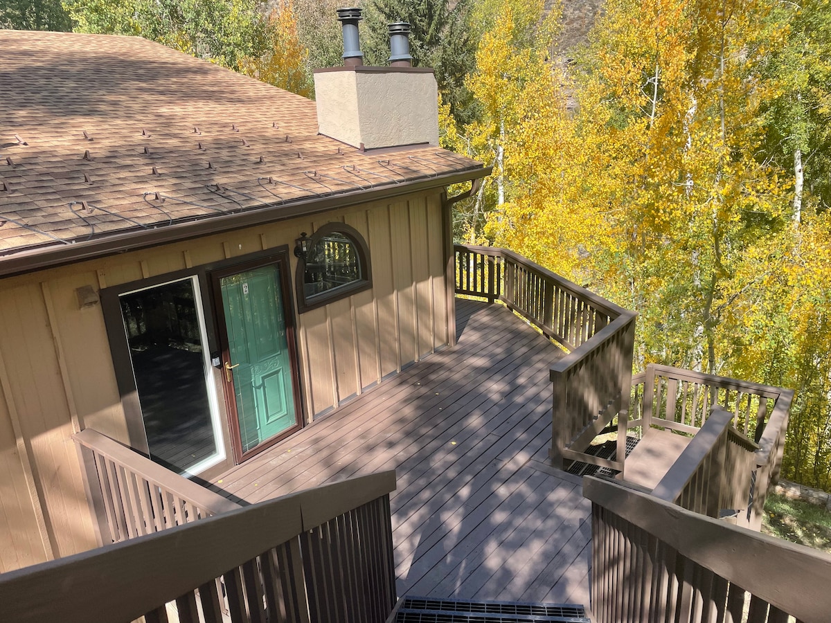This is the perfect dog-friendly family getaway! Located on the 1st hole of the EagleVail Golf Course, walk out the back door to hike, snowshoe, or cross-country ski. Relax on the wrap-around deck overlooking the golf course and mountainside, or soak in the private, seven-person hot tub with luxurious foot jets. Free bus to the slopes- two blocks. Enjoy our well-stocked, spacious kitchen, and utilize our strong Wi-Fi and cell coverage to work remotely. Welcome to your mountain getaway!