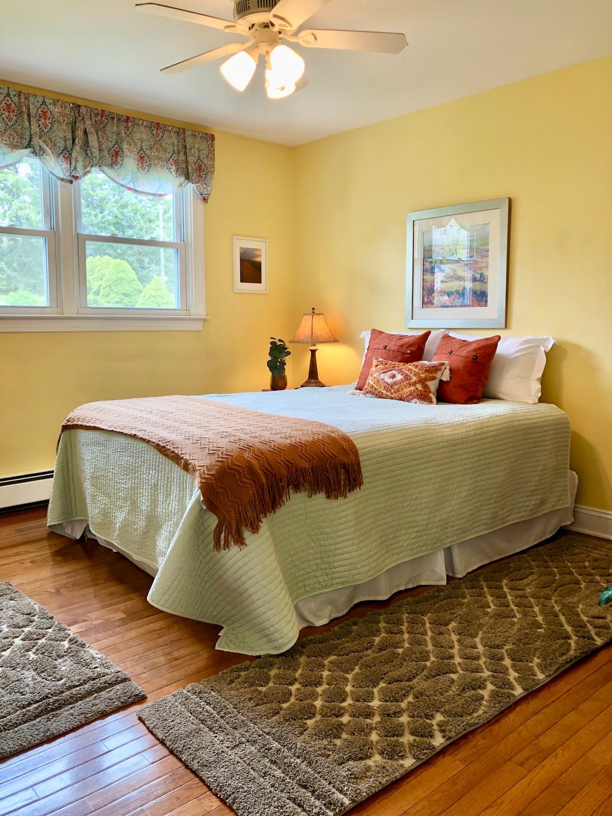 The Get Away Studio Suite on Rock Farm, quiet, safe, 600 sf open concept floor plan w/ 9ft ceilings. Peaceful, secluded, woods. A king bed guests love, add twin bed for adult, 2 children on sofa bed. kitchen, dining, living area & bath. Pillow choices. Sundries & amenities. WIFI 500 Mbps, TV ROKU, Play yard, DIY breakfast! Parking, shopping, groceries, lakes, 13 min UCONN, 20 min Hartford, trails & parks. WE ARE 5 ⭐️ clean w exc hospitality. See The Hide Away 2 bdrm www.airbnb.com/h/atrockfarm