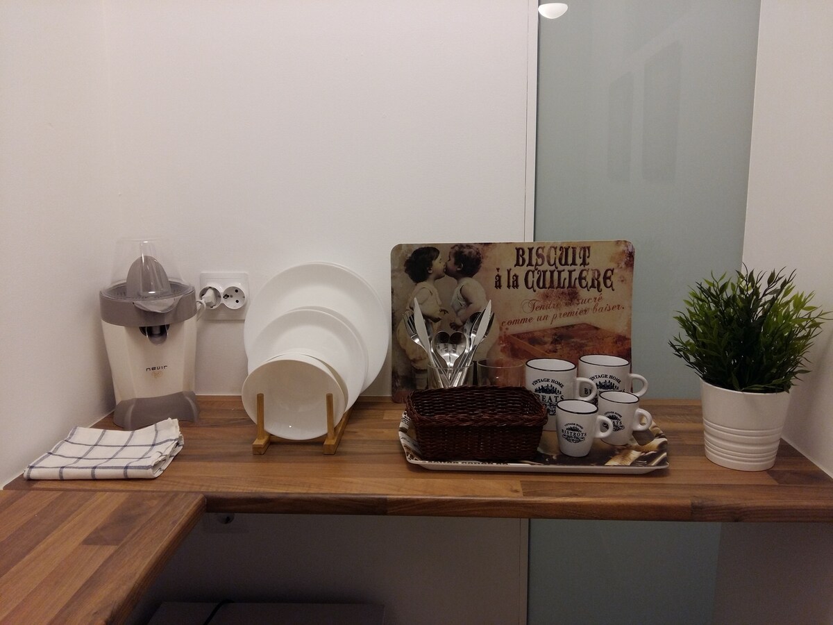 Spacious room with seating area, kitchen and private bathroom. Downstairs and with garden. Fully self contained space with private door, attached to the house we live in. Located in a very quiet but very central residential area, just 5 minutes walk from the historic center, to visit, buy... It has everything necessary for the kitchen, in addition to washing machine, tv, sofa living, and outdoor table to enjoy the garden. If you visit the Celler del Miracle, we will give you a bottle of wine.