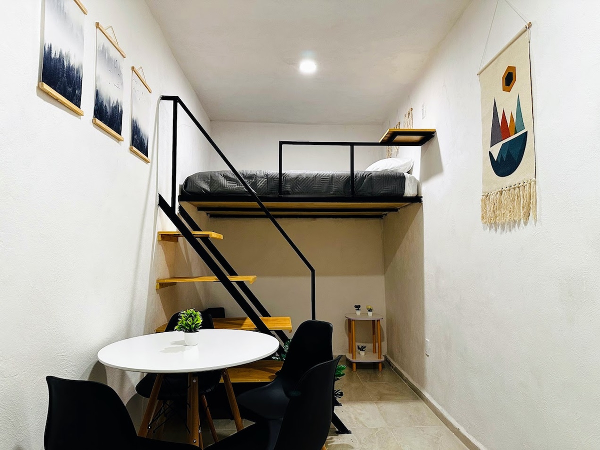 Comfortable and cozy loft in a single environment for one or two people with everything you need to enjoy a pleasant stay in the beautiful city of Querétaro. Located in Col La Pradera near industrial areas, squares, and shopping centers, with access to various fast communication routes and public transportation. It will be a pleasure to welcome you and personally assist you. You will stay in a meticulously clean space and under the disinfection standards set by Airbnb.