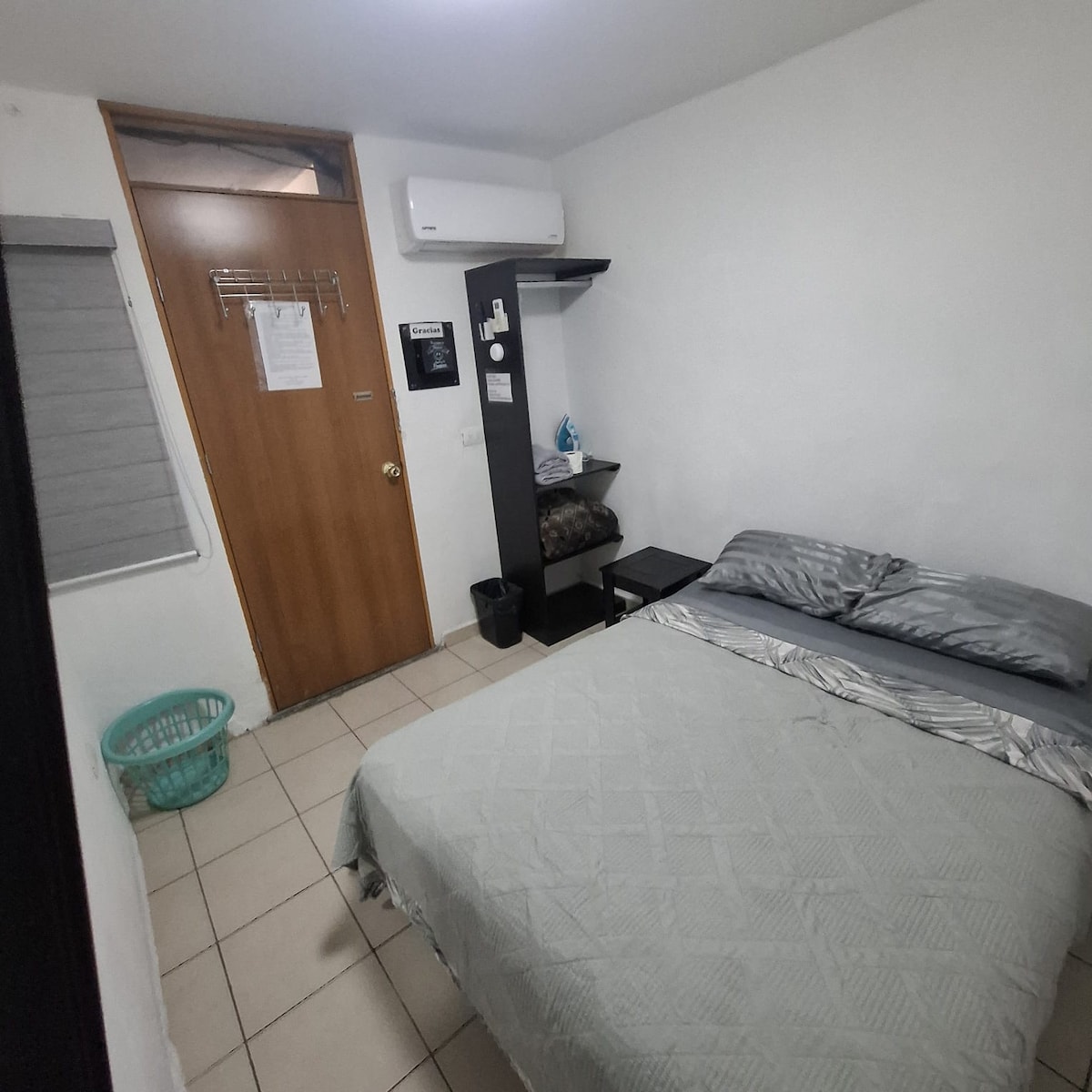 A mini apartment in a privileged and safe area with an excellent location in San Nicolás. Airport at 17 min, quick access to shopping centers such as Paseo de la Fe and Citadel just 3 minutes walk and restaurants. Downtown Monterrey 15 minutes away. Relax in this quiet, comfortable and elegant place. You'll have everything you need for a comfortable and productive stay. Outdoor parking, linear park 100 meters away for physical activities. Air-conditioned room, Netflix. Jn3:16.