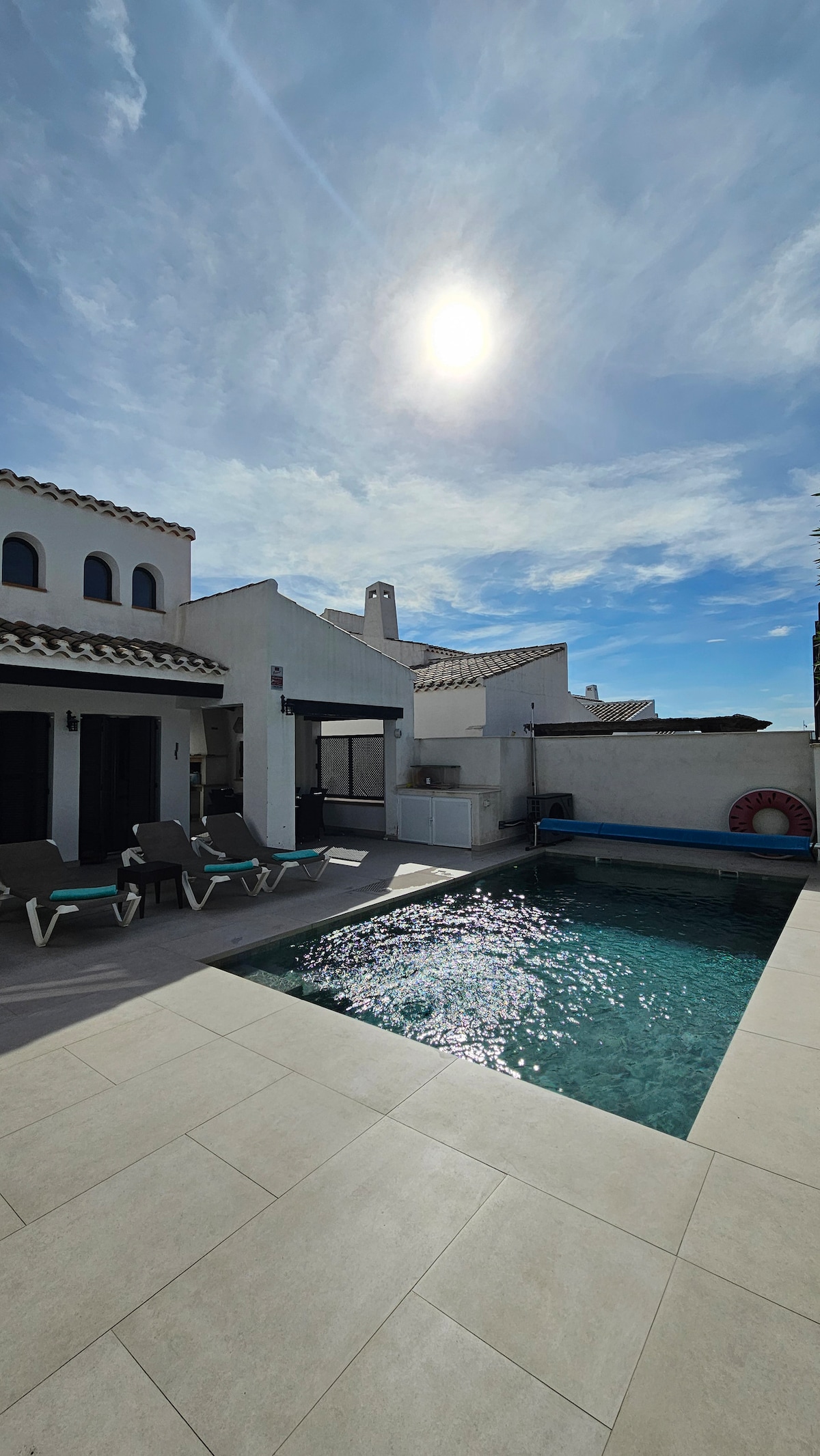 Early booking offer: Guests who book at least 6 months in advance receive a 20% discount! Exclusive Villa with Pool & Jacuzzi – Perfect for You! 🏡☀️ This luxurious villa in Santiago de la Ribera was designed with you in mind! A heated pool, jacuzzi, summer kitchen, and spacious terraces ensure your ultimate comfort and relaxation. Enjoy outdoor cooking, a fun game of foosball, and the proximity to Mar Menor Beach.❤️ 📅 Book now and soak up the Spanish sun! ☀️