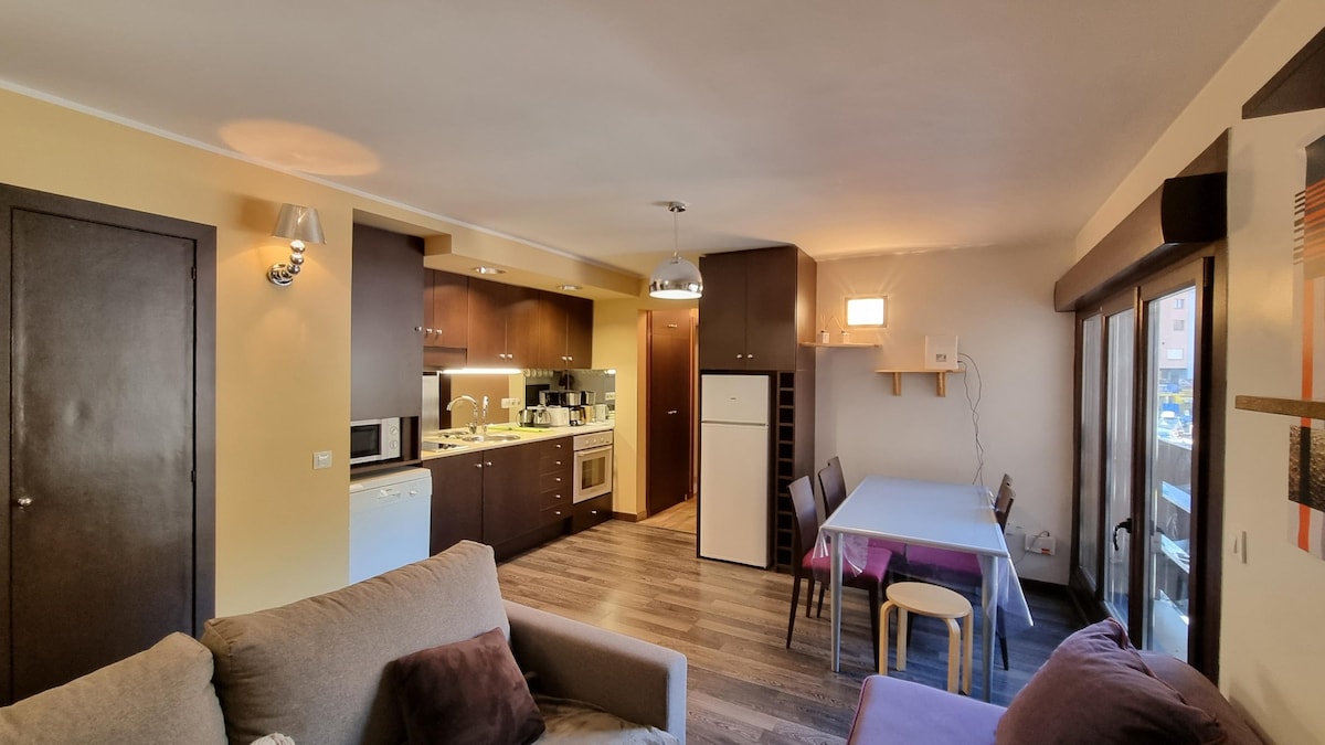 NEW • The best location of Pas de la Casa, at the foot of the ski slopes with breathtaking views of the mountain. Refurbished, our "Mountain LOVERS" apartment, offers you all the comforts to have a stay at home. Great for a couple of travelers. Equipped kitchen, double bed (150) with quality bedding, dining area, WiFi box and smart TV, living area with decorative fireplace, bathroom with large shower.