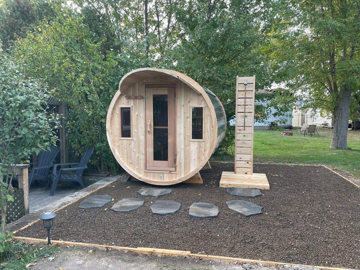 Charming, rustic cottage with many modern updates. Updated kitchen and bathroom, with decorative touches continually being added. Private corner lot with large deck and views of Lake Erie. Lake access to quiet, rocky beach directly across from cottage, and two other beaches within walking distance. Ideal place for birders, families, couples, nature lovers and wine connoisseurs. Free access to Point Pelee National Park for guests, throughout stay! Newly added Sauna and outdoor shower!