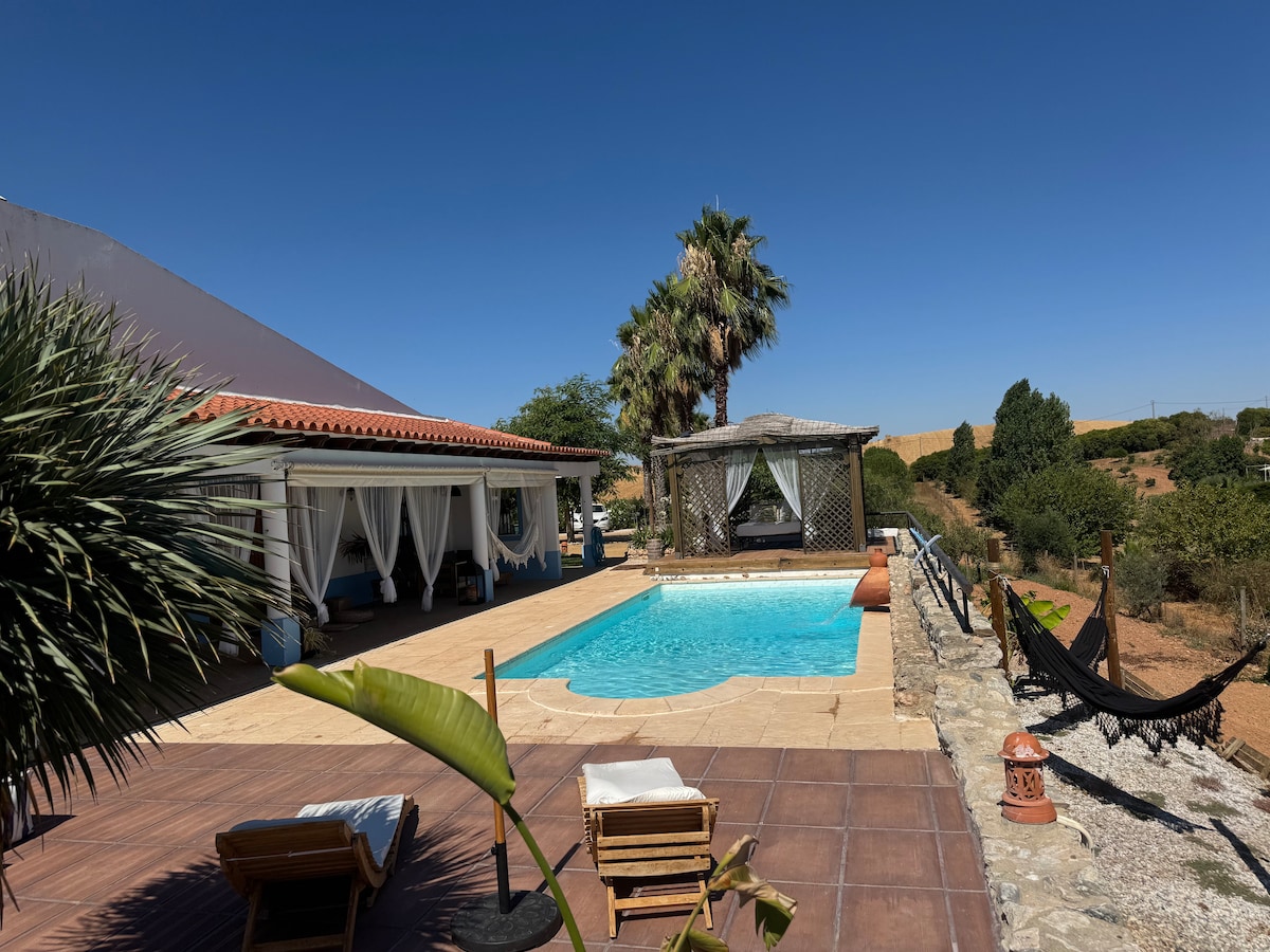 Monte Mi Vida Villa is nestled in the quiet country side of Alentejo. The perfect secluded place to relax and recharge.You can Spend your day exploring vineyards and wineries, local markets, Lake Alqueva for fishing, boating water sports or some beach fun, Some history of Portugal or Dark sky Alqueva for the indescribable feeling of stargazing. You can also just sit poolside and let your worries melt away. Look at west and you will forever remember the breathtaking sunsets with a glass of wine.