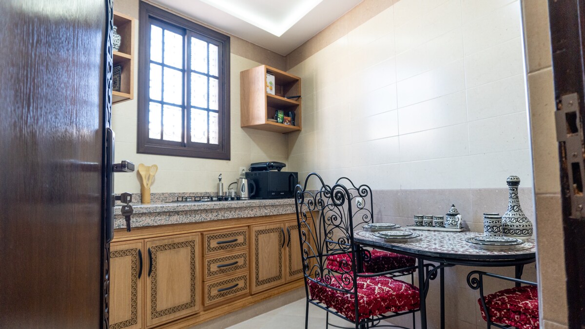 Welcome to Dar El-Kendil, a charming 1920s riad nestled in the heart of Fès’ historic medina! 🎨✨ You’ll have the entire house to yourself. Enjoy traditional Moroccan charm combined with modern comforts: cozy furniture, cheerful décor, air conditioning/heating, fast Wi-Fi, and a fully equipped kitchen. Just a 10-minute walk will take you to Fès’ most iconic sites: Bab Boujloud (the Blue Gate), Al-Qarawiyyin Mosque, Funduq al-Najjarin, & the historic market, perfect for fresh local ingredients.