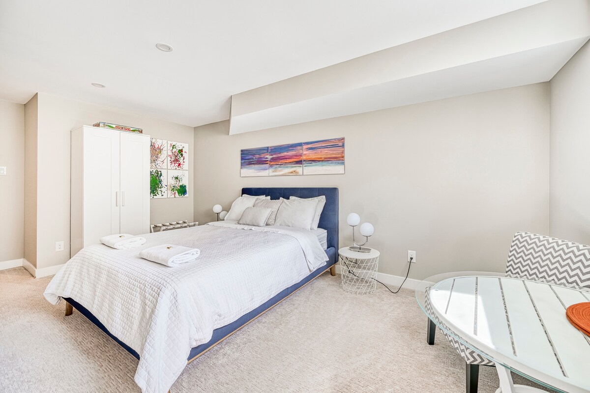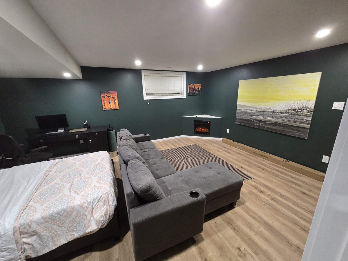 Welcome to your cozy and private studio retreat. Located in a quiet, lower-level space with insulated walls, you’ll enjoy restful nights and full privacy. The suite includes a comfy bed, workspace, mini fridge, entertainment system and microwave—perfect for short or longer stays. Just a 10-minute walk to Line 2 subway and a short walk to the nearest bus stop. Surrounded by great local eats, shops, parks, and scenic trails for nature lovers.