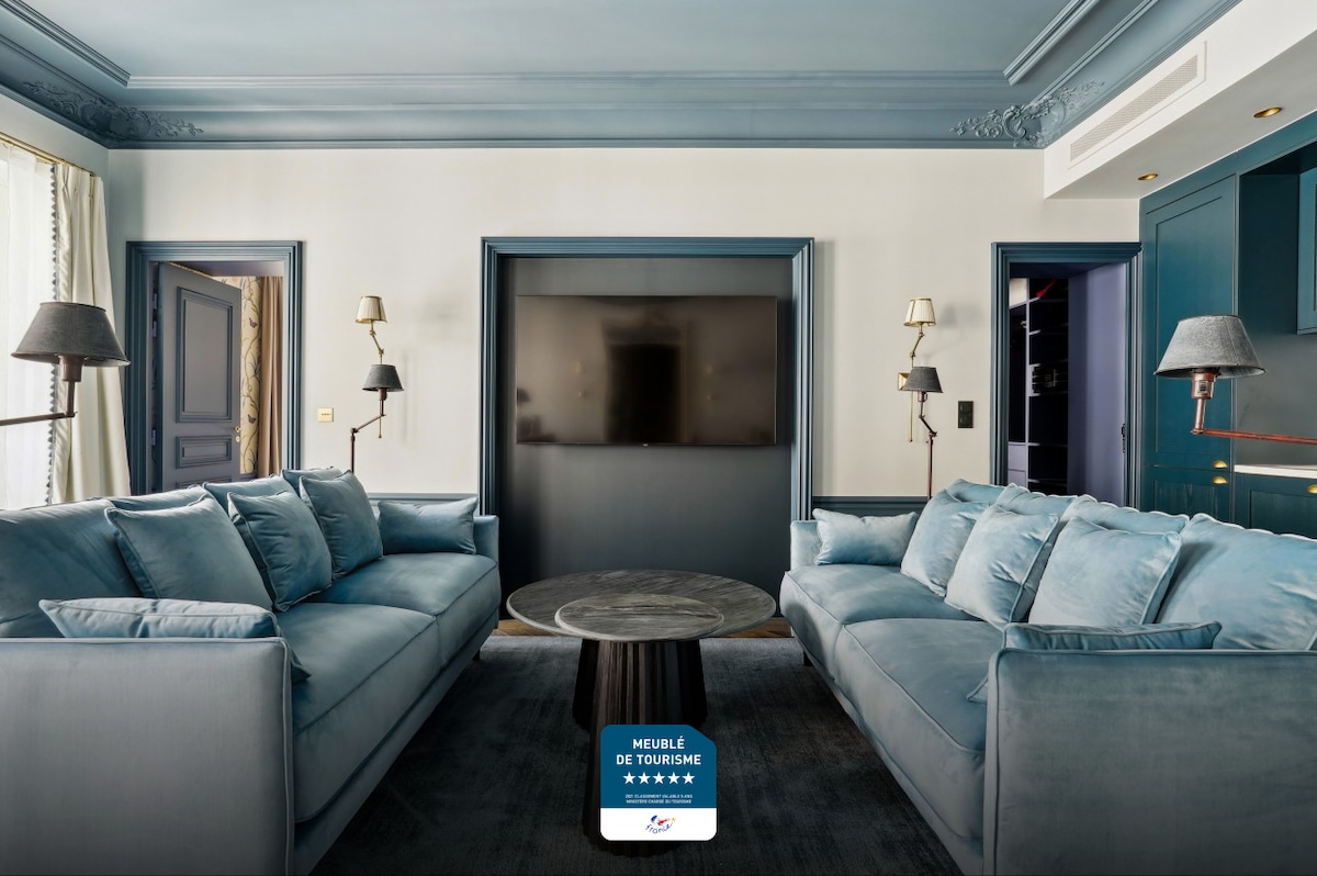 The apartment is located near the Moulin Rouge, in the Montmartre district in the heart of an atypical and very quiet place;It is a 50m2 space which does not overlook the boulevard, ground floor, located far from the noise of the street, high standard with a beautiful bedroom, a relaxation area, a lunch/dinner area, work area , kitchen .It is equipped with new technologies, excellent wifi, a large format television (85p), hi-fi sound and adjustable lighting according to your tastes