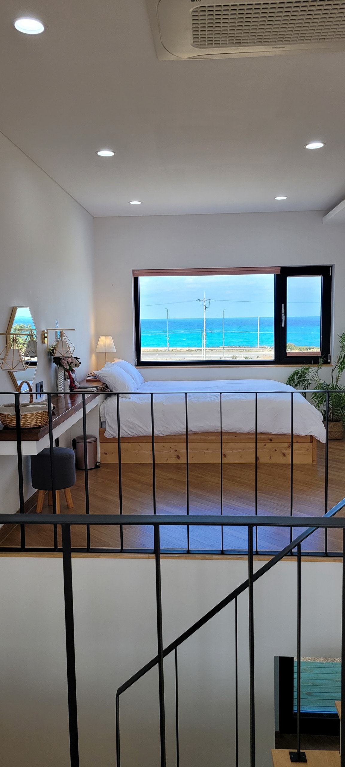 This is Purda Ocean, located in Wolyeong Cactus Village in the west of Jeju Island. :) As the name of the cactus village is unique, you can easily find wild cacti here and there, and enjoy the beautiful coastal walk between the cactus and the sea in the village! You can enjoy the sunset right in front of the accommodation with a beautiful ocean view in all rooms! We'll always greet you with a clean look! Thank you :)