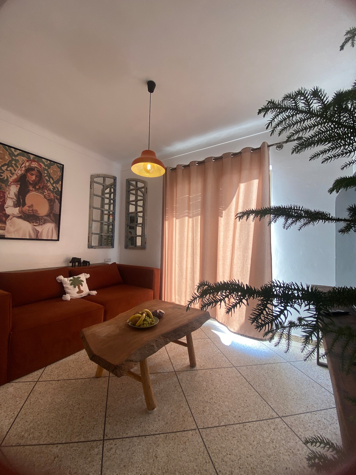 Warm and charming flat in the heart of Essaouira’s old medina! Features 2 bright bedrooms with king-size beds, 2 private bathrooms, a cozy living room, and a small but practical American kitchen. Just steps from souks, cafés, and the beach. Enjoy ultra-fast fiber internet (up to 200 Mbps), perfect for remote work or streaming. ⚠️ Not available for unmarried Moroccan couples.