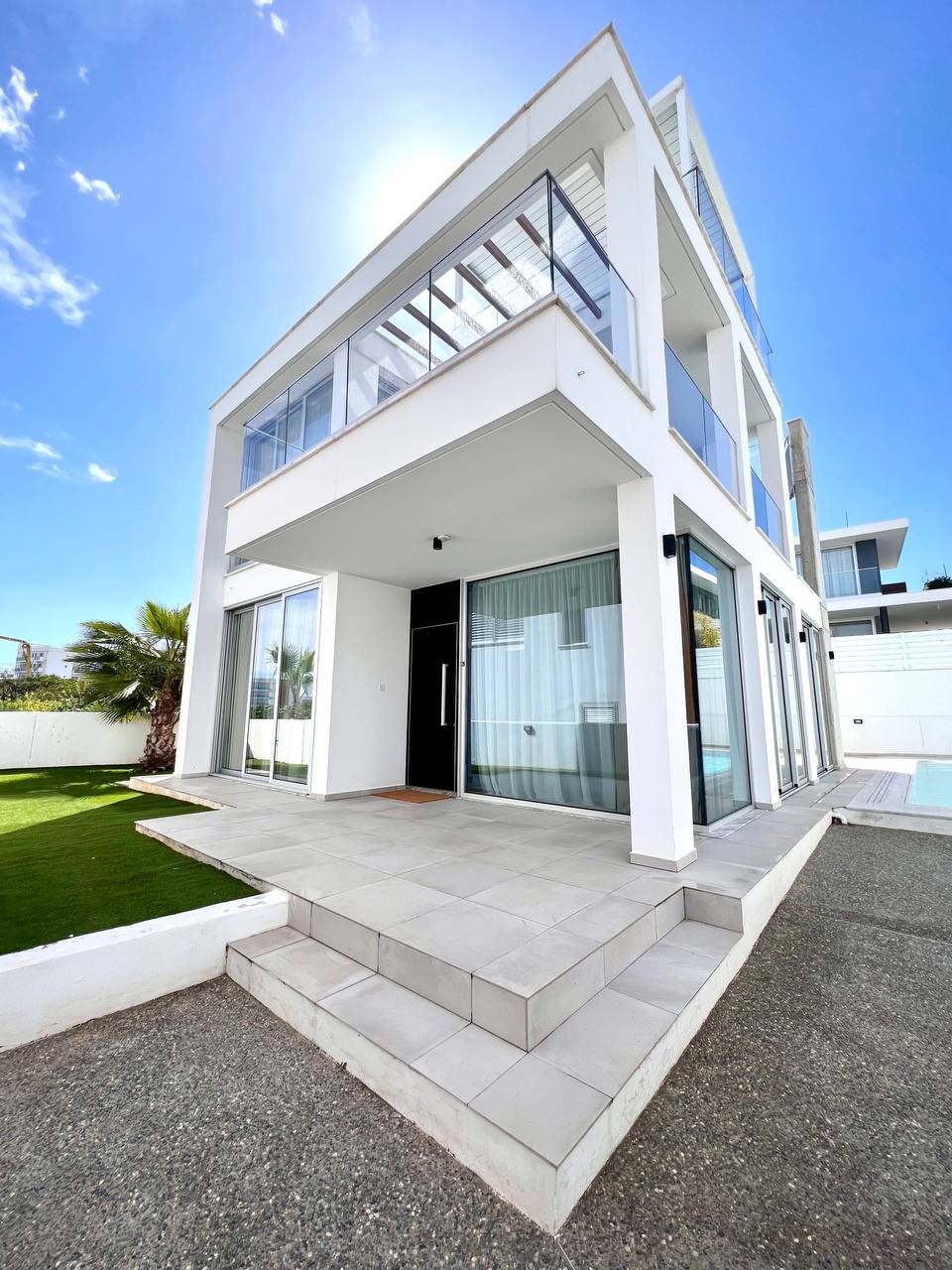 This stunning 3-bedroom villa offers panoramic sea views over Protaras, blending luxury, privacy, and tranquility. Enjoy the open-plan living area with modern kitchen, cozy fireplace, and floor-to-ceiling windows showcasing breathtaking vistas. The master suite features a walk-in wardrobe, en-suite with hot tub, and sea views. Outdoors, relax by the large overflow pool, BBQ area, and spacious seating. Perfect for a serene Mediterranean retreat, this villa promises an unforgettable experience.