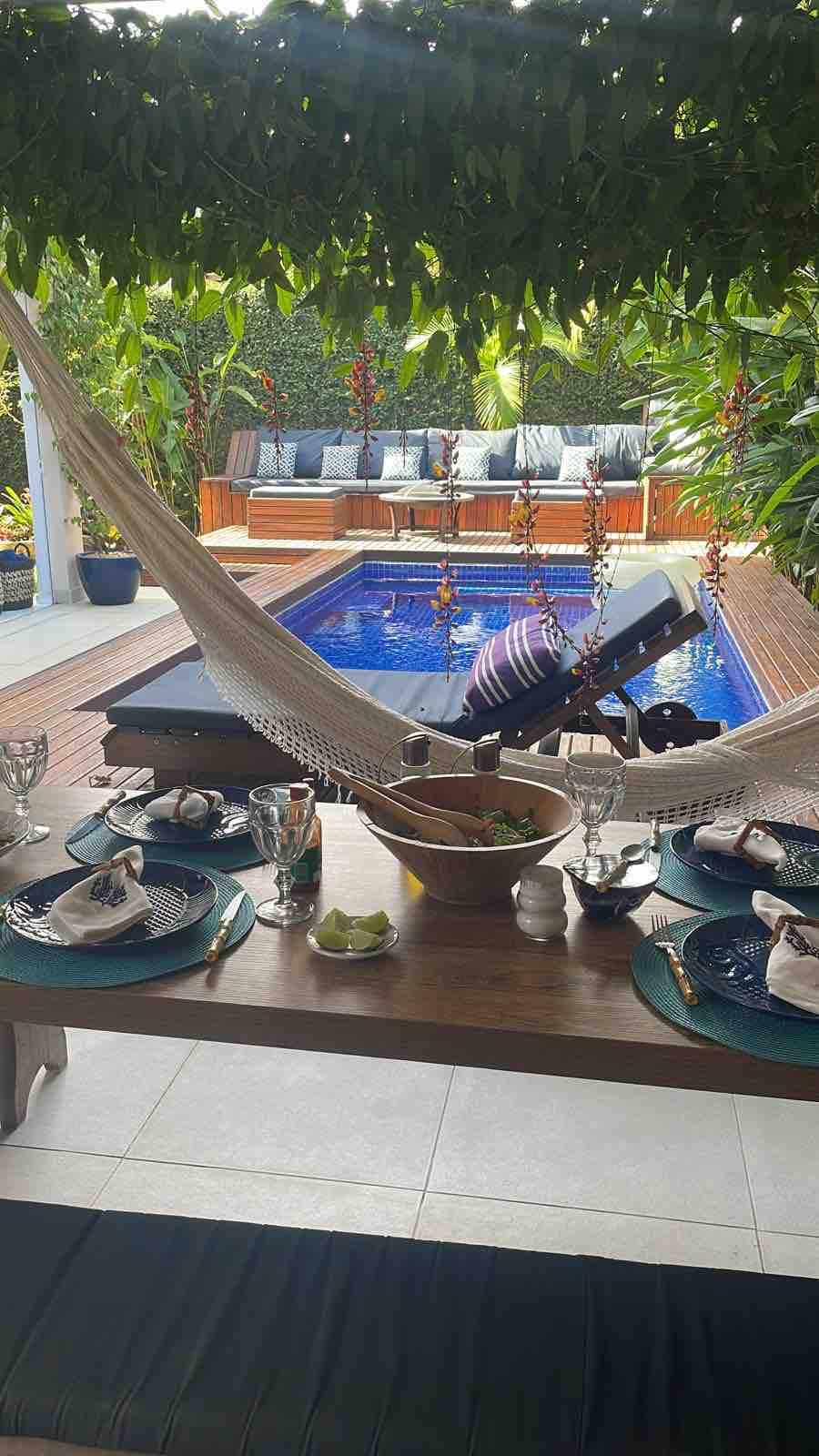 Family CONDOMINIUM with swimming pool in Paúba. We have AIR-CONDITIONING in all rooms, a large living room, fireplace, open kitchen, spacious balcony and 3 en-suites. We have TV/Sky/Netflix, Wi-Fi with 300Mbps fiber internet. Rear outdoor area facing the Atlantic Forest, 42m2 Gourmet Space with barbecue, pizza oven, table, refrigerator, plus a cold Jacuzzi (hydro off) with umbrella. The beach is 200 meters from the house and Maresias is 1 km away (5 minutes by car). Market and restaurant nearby.