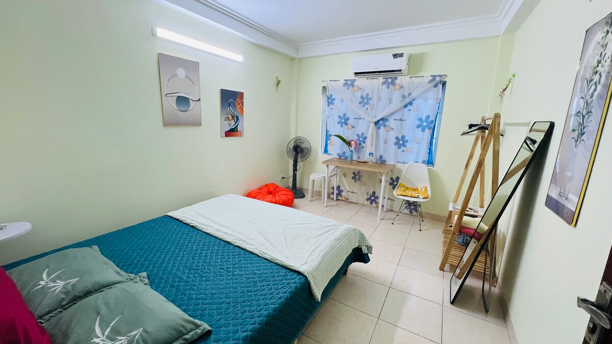 A hidden gem in the heart of Hoan Kiem District, where you can rest and unwind after exploring the bustling Old Quarter. Our space offers the warm feeling of home, right here in beautiful Vietnam. Located on a lively street with local eateries, cozy cafés, and Vietnamese fashion boutiques, yet still a peaceful and quiet retreat. The house is filled with natural light thanks to three open sides, and features a spacious balcony where you can relax or enjoy a smoke.