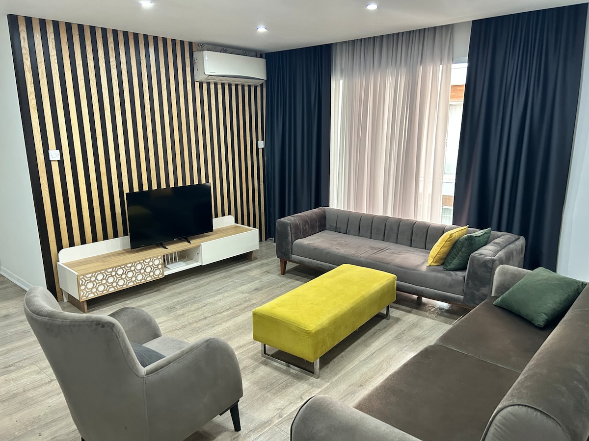 Our apartment, centrally located in the Küçük Kaymaklı region of Nicosia, is in a neighborhood with easy access to everywhere. In the most popular area of Northern Nicosia, it is 400 meters away from the KIBHAS Ercan Airport Çangar Auto Gallery stop with city and intercity bus stops. Our apartment has 1 double bedroom, 2 single bedrooms, 2 bathrooms/toilets, both with shower cabins, a kitchen, a dining area, a television area and a spacious living room with a spacious balcony.