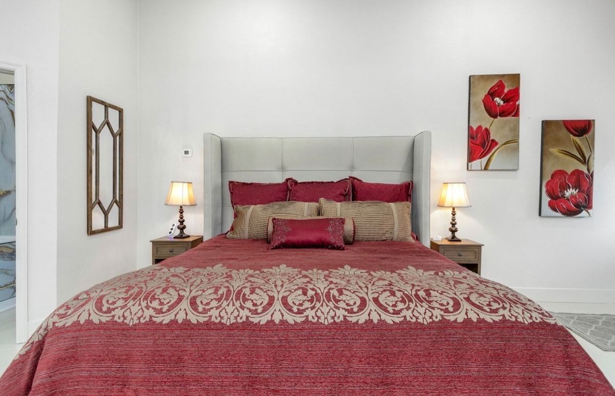 Scarlet Sanctuary is a luxury waterfront adults only spa suite designed for romance, relaxation, and unforgettable moments. Wrapped in velvet textures, warm lighting, and deep red tones, this intimate retreat invites couples to unwind, reconnect, and escape the world for a while. Slip into plush robes and melt into your private jacuzzi tub surrounded by marble and gold. Cozy up by the fireplace, enjoy wine on the chaise lounge, or stroll to the marina just steps away.