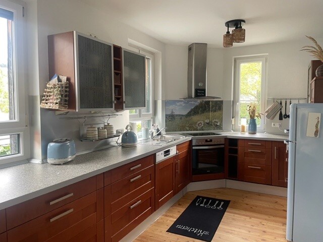 Take some time out and spend a nice holiday at the Ammersee and in the 5 lakes region or stay in the Starnberg area for business purposes. Book our new 3 room flat (89sqm) with fully furnished and new high quality fitted kitchen. From the balcony you have an indirect view of the Ammersee and in only 4 minutes on foot you are already at the longest lake promenade in Germany. The S-Bahn (S8 Munich and airport) is a 15-minute walk away.