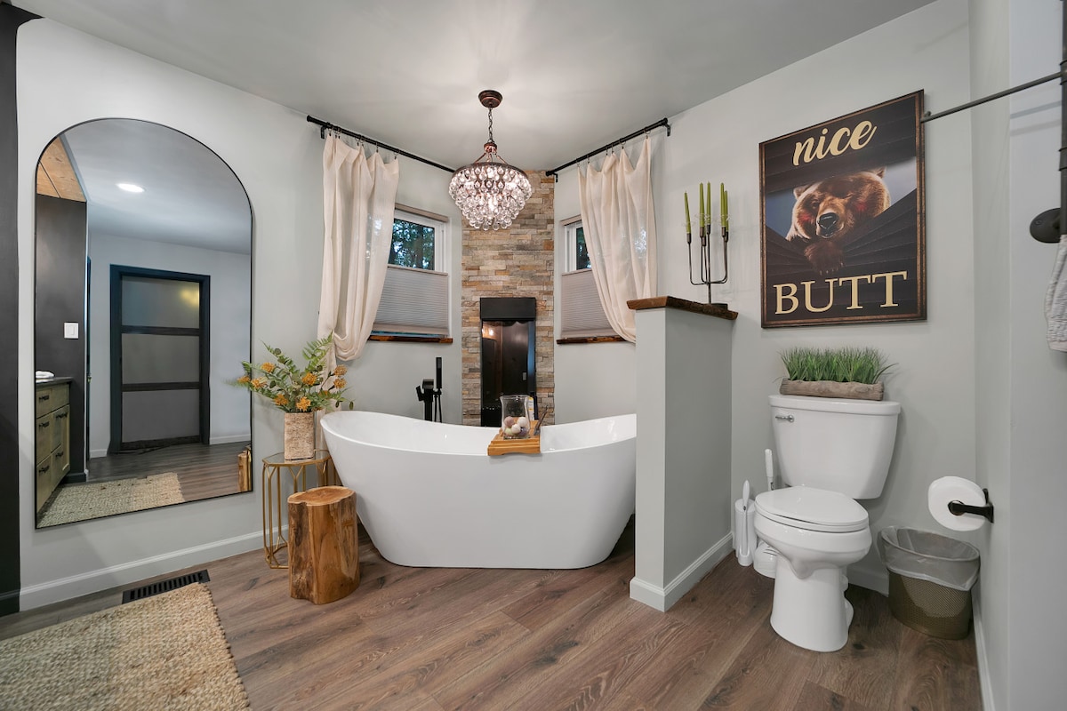 Meadowstream Lodge offers a one-of-a-kind experience. Set on 2.5+ acres w/rare large pasture, -great for pets and kids- creek, forest and views of Black Rock Mountain. Feels like an estate, yet walkable to downtown Clayton’s fantastic dining, shops, and bars. Unwind in the hot tub/pool (heated) combo for 10, gather around the fire pit, or lounge on the large deck with café lights and fire bowl. Every detail-from designer interiors to curated family amenities- makes for an unforgettable stay.