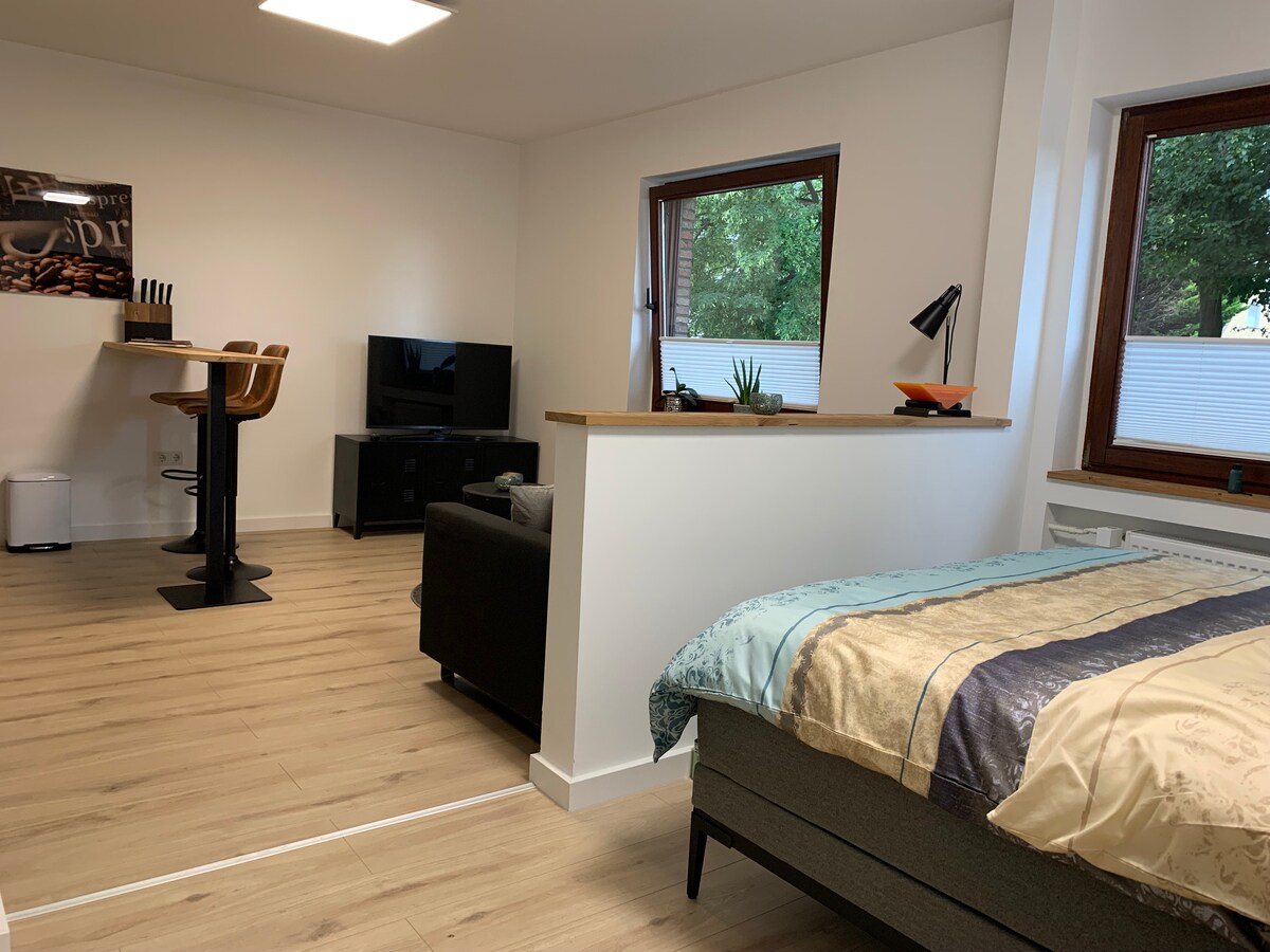 We warmly welcome you to our new apartment at the gates of Cologne. A high-quality, friendly ambience awaits you after an eventful day. In the well-equipped kitchen, you can prepare a small meal yourself. The comfortable sofa invites you to a TV or reading evening. The box-spring bed guarantees a restful sleep for 4 people as well as the sofa bed with excellent sleeping comfort.