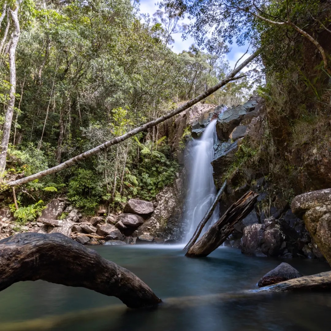 Recharge in this gem of a hideout perched on the creek bank above the deep swimming hole. A simple approach to comfort provides undercover alfresco dining areas, air conditioned sleeping rooms, a bathroom with all the basics and lots of outdoor spaces. At days end the background sounds of the rippling creek and a chorus of birdcalls settle you into this rustic, bushland shack. Dawn welcomes you and surprises you with a large mob of wallabies and a curfew of curlews reclining out front.