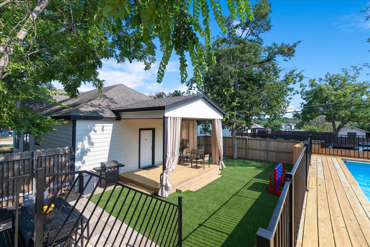 Welcome! Our charming retreat is perfect for families, friends, or couples looking to unwind in style. The Space: Heated Pool: Dive into relaxation year-round in our newly built private heated pool. Pool gets hot like a jacuzzi! Enjoy the sun on the spacious deck, complete with lounge chairs. Location: Just a short drive or ride-share away from Downtown Dallas, you’ll have easy access to fantastic restaurants, shops, and attractions. $75 to heat the pool! We can't wait to host YOU!