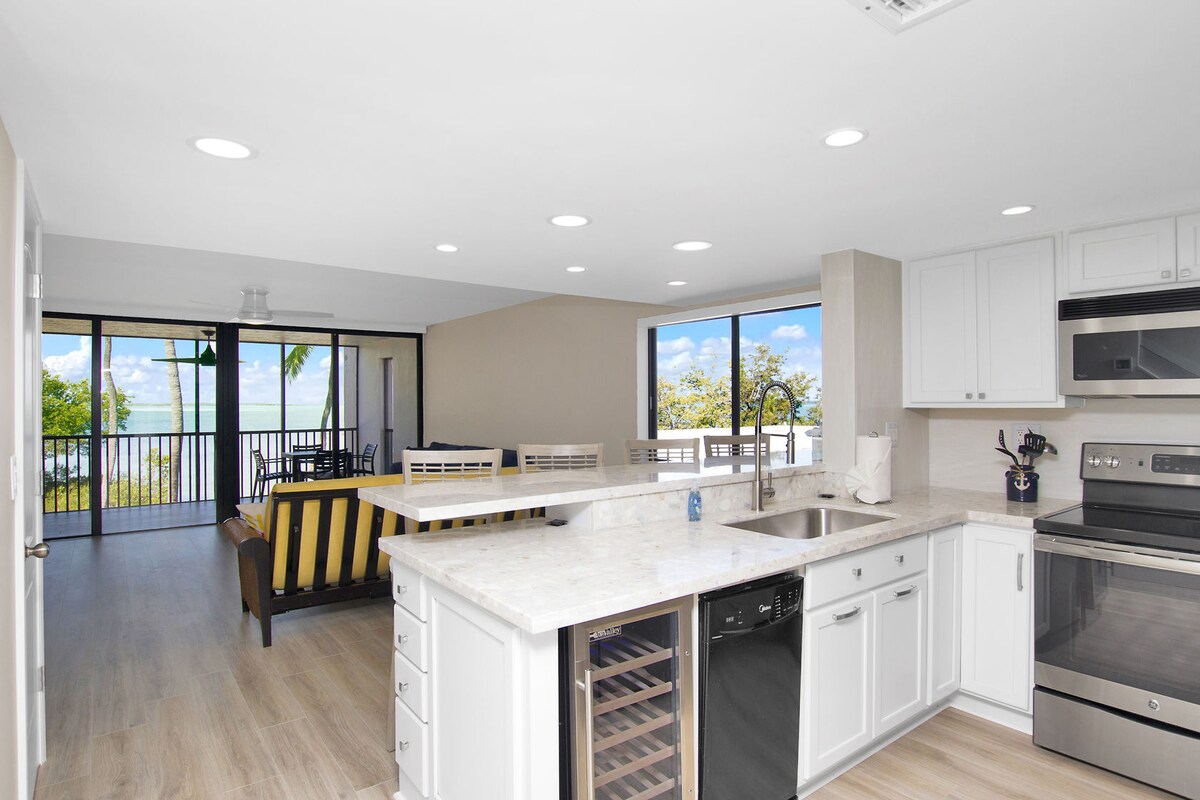 Sept - Nov. building improvements will take place and our rates have been heavily discounted for the inconvenience. No work will take place during the Weekends or Holiday's. The amenities are not affected. Paradise awaits you in this large END unit, 2 BR/2BA in the highly desirable community of Ocean Pointe Suites! Newly renovated Modern Beach decor unit with breathtaking views from our Private beach and Marina are just a few highlights of this island retreat.