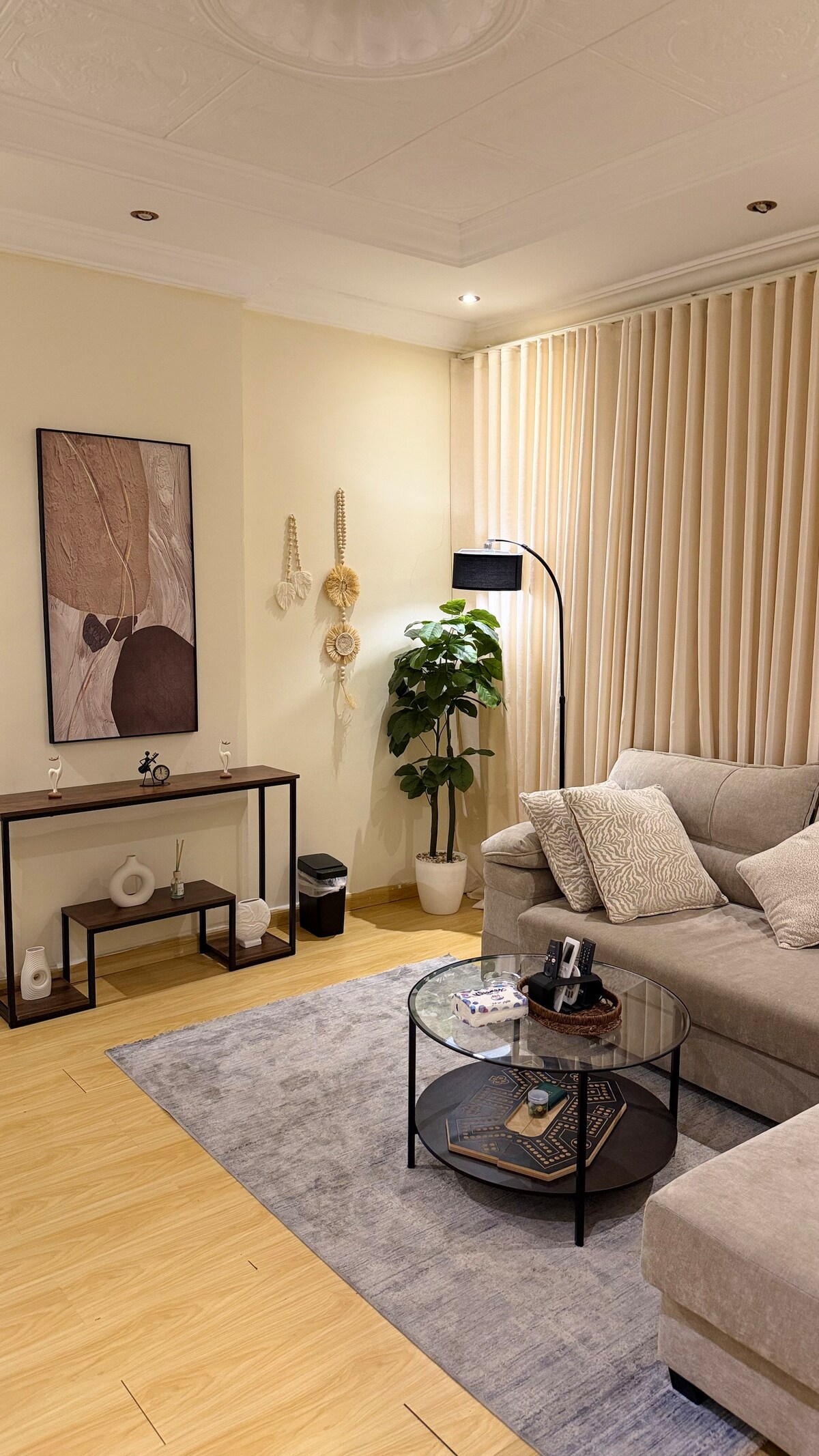 ✨ Luxury hotel-like stay with smart entry and privacy ✨ Two elegant bedrooms: a master with private bathroom and a twin room ✨ Modern cozy living room designed for relaxation or gatherings ✨ 75-inch smart TV with Netflix, YouTube, and more ✨ Fully equipped amenities for a seamless enjoyable stay ✨ Complimentary laundry service for your basic travel needs ✨ Prime location near King Abdulaziz Airport, waterfront, malls, restaurants ✨ A luxury stay with your personal touch… refined and unforgettabl