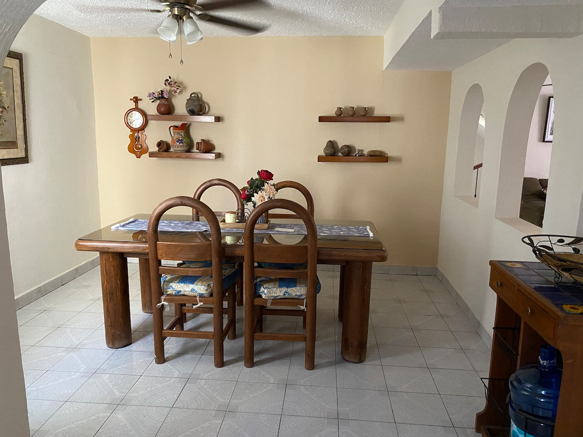 Your family will be close to everything if you stay at this place, 100 meters from IMSS 35, 10 minutes from the consulate and cinemas. Lots of seafood restaurants, fast food, antojitos as well as supermarkets. Kitchen equipped with everything you need to prepare a delicious meal, you have at your disposal, coffee, oil, salt and pepper.