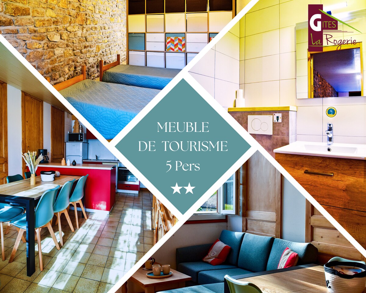 Audrey & Fabrice welcome you to their recently renovated cottage. In our Loft-style house you will find a covered terrace, a living room with kitchen, dining room, living room and upstairs, bathroom, bedroom open to the downstairs room with 2 beds. Come and enjoy the many activities and tours that our beautiful green region offers (hiking, walks, thermal baths, Casino, tree climbing, tastings...) and enjoy the calm and nature that surround us.