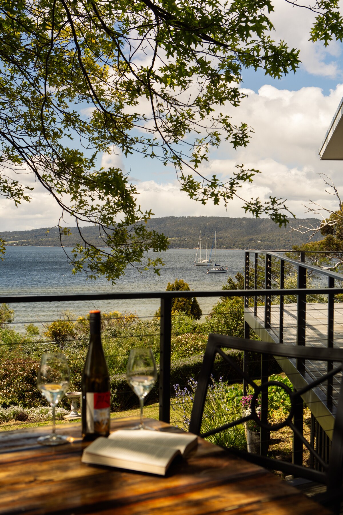 Stay in one of the only Bruny Island waterfront properties that has spectacular ocean and mountain views from the living/dining/kitchen and bedroom, not to mention the enormous deck. Relax in bohemian luxury on 2 acres of natural bush and garden in the former art studio, now a private guest home, complete with unlimited WIFI. Full of artwork and Persian rugs, this is a place to unwind and absorb the peace and amazing views, especially at sunset, with uninterrupted access to the water's edge.