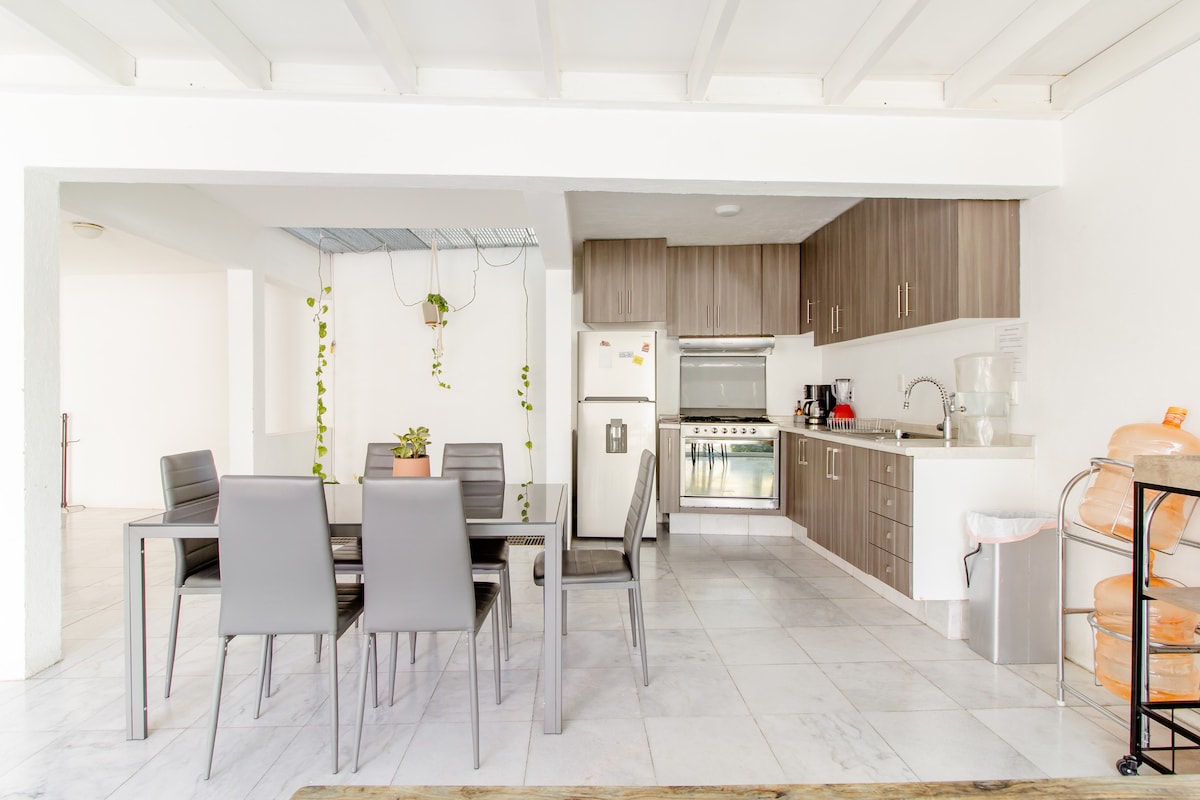Ground floor apartment, easy access, with a covered garage in front and a spectacular view Ideal for executives, seniors, students or a romantic night Surrounded by nature and the movement that energizes the city One of the best areas in Querétaro, premium places just a few steps away: Fresko, Starbucks, Walmart Express, Oxxo, premium vegan stores, gyms, restaurants, and cafes + 300Mb fiber optic Internet + Air conditioning + Laundry in the building + Parking