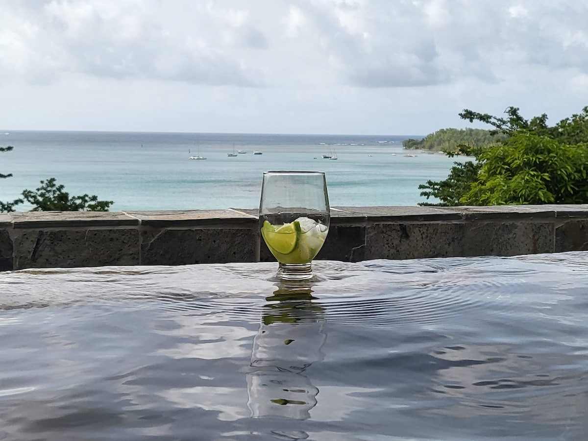 The F2 Ixora is one of the 2 apartments that make up the villa nestled in the small town of Trinity, facing its beautiful bay. From its terrace, you feel the sweetness of the trade winds, while you contemplate the panoramic view, optimal relaxation assured! You can enjoy the spa, as well as the heated pool, made of natural stone and surrounded by palm trees with also views of the bay to extend this relaxation.
