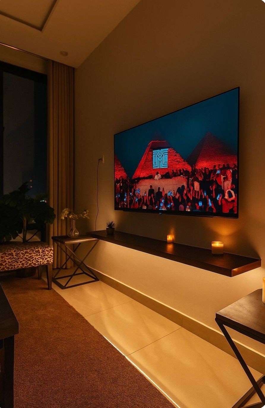 Experience designer living at Luniq, just steps from MM Alam Road the heart of Lahore’s cafes, boutiques, and nightlife. • 🛋️ Aesthetic lounge with cozy rugs, hanging lamp & full-length curtains • 🛏️ Plush king-size bed with premium bedding & city views • 55” Android Smart TV with Netflix & YouTube Premium • 🍳 Fully equipped modern kitchen with essentials • ⚡ Fast Wi-Fi for work or streaming • 🔑 Seamless self check-in for complete privacy • 🌆 Prime Gulberg location