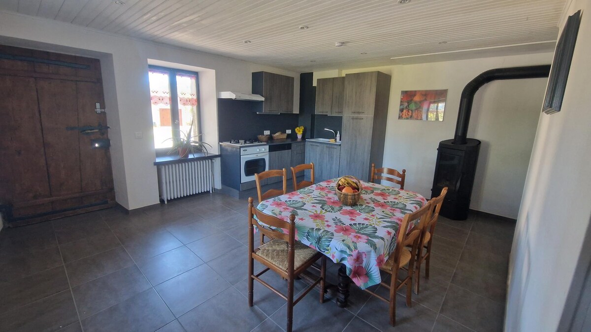 Large private room, locked, 14 m2 with king size bed. TV, office space, fast Wi-Fi, USB 2.0 and power outlets. Room with ski and travel decoration and spirit. From the window equipped with roller shutters, view of the Jura mountains, the Montée des Oeufs ski lift at the Crozet-Lelex resort. Shared outdoor space: bathroom, kitchenette and garden.