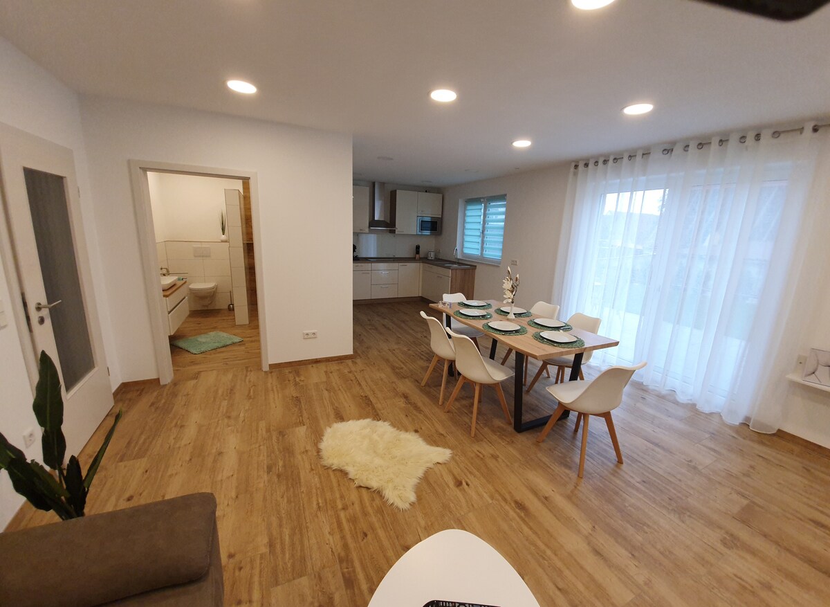 Relax in this home. Quiet location, surrounded by nature. Centrally located between Rothenburg ob der Tauber and Dinkelsbühl, the most beautiful old town in Germany. Ideal starting point for your day trips. Or a walk in the Franconian Highlands Nature Park and a swimming lake is also very close. Our accommodation was completely newly built and lovingly furnished to prepare a few unforgettable days for our guests. Very convenient access through your own front door with a numerical code.