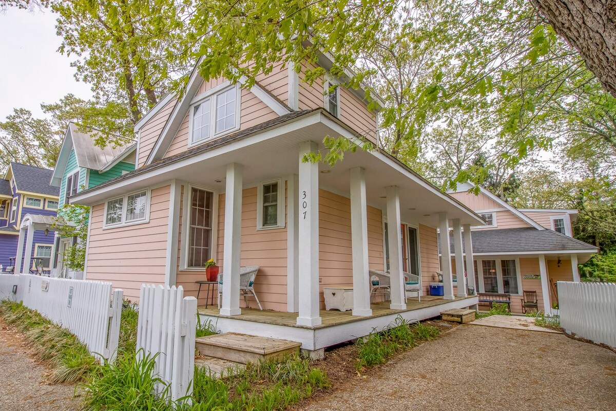 Beautiful home in the heart of Beachwalk, across the street from Lake Kai, pools, basketball & tennis courts and 2 blocks to Lake Michigan. This home is bursting with charm. Front porch runs the width of the house. Dining area opens up to family room with a lovely fireplace. Stunning master bedroom w/walk-in closet and beautiful new bathroom with all the finishes. 3 more bedrooms upstairs, one with full bathroom attached and the other 2 sharing bathroom. 5th bedroom on the lower level.