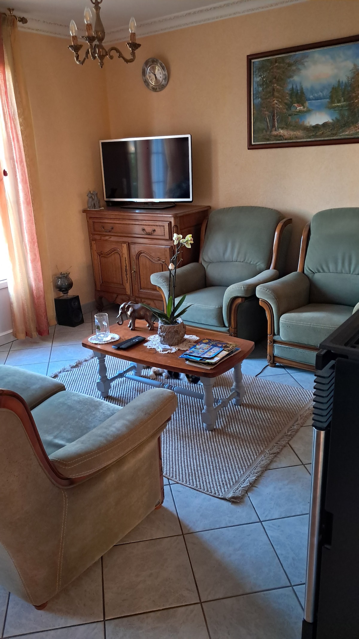 Welcome to our home, so at home! Small studio in the house, independent from the life of the house and isolated from the outside noises of the city. An extra bed is available. If you want a 3rd bed we will offer you a mattress on the floor. Free parking in front of the house.. Kitchen, coffee, tea, herbal tea, madeleines, kettle, fridge, microwave, induction hob, kitchen equipment.