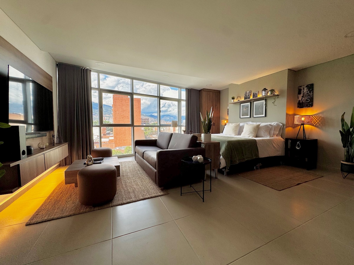 Take it easy at this unique and tranquil getaway. This beautiful, modern new 50 m² studio is ready for you. Near from ATMs, Grocery stores, Restaurants, and Cafes. 10 minutes walking to the night party in Provenza and Park Lleras. King bed, A/C, Netflix, amazing view from 14th floor, gym in the building, parking load, security 24/7. *Zero tolerance against sexual tourism. *Please see our house rules. *If you are Colombian resident you must pay IVA 19% additional.
