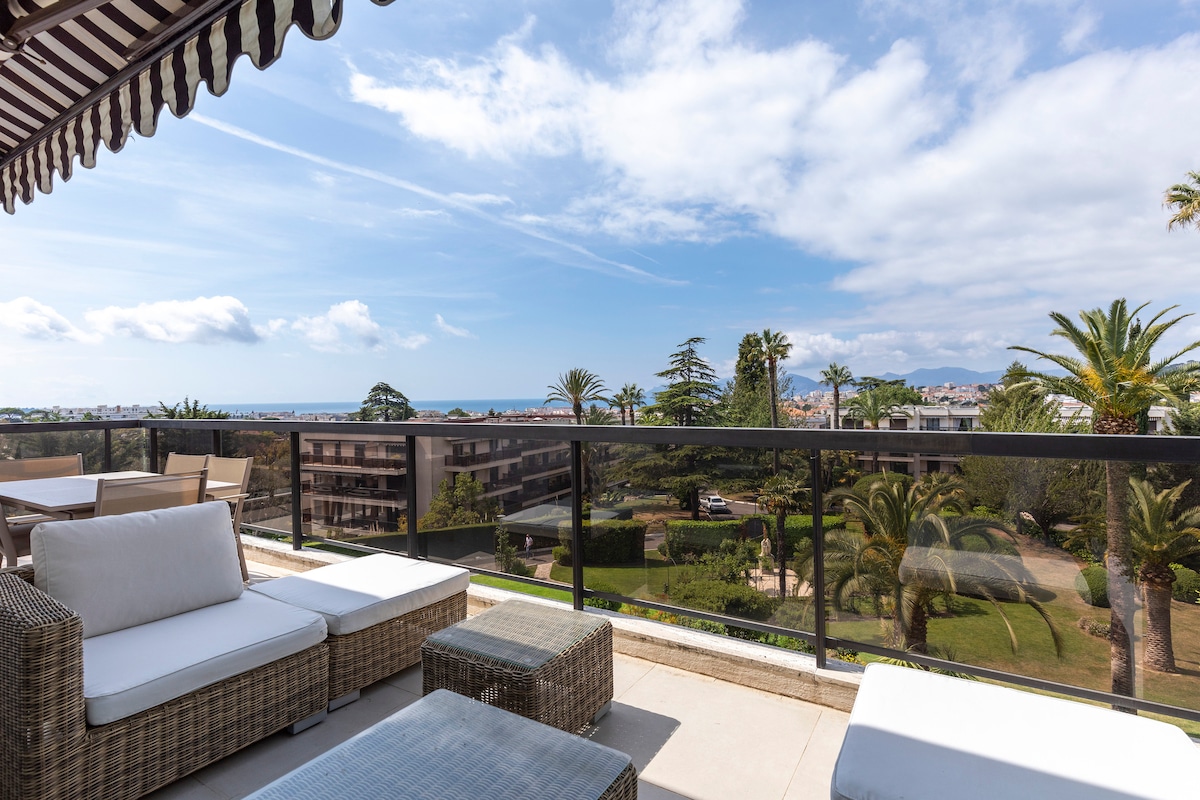 We are offering for rent our beautiful family apartment that we have just completely renovated with the help of an architect A 15-minute walk to the Croisette and the train station, it has a terrace with an incredible 360-degree view of the sea, the bay of Cannes and California Ideally located, quiet, while remaining close to shops and the city center, it is fully equipped with high-end amenities All you have to do is drop off your luggage and have a wonderful time